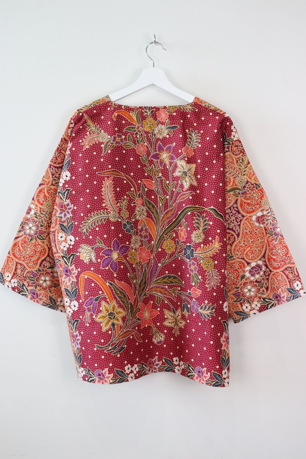 Our batik kimono worn over your basics will add that beautiful Indo-Malayan cultural touch that reminds you of your heritage or just to appreciate the art of our region. Keeps you feeling comfortable while indoors and great for those chilly rainy days. Definitely a piece for you to wear throughout the seasons. Made of 100% cotton, they are breathable and cooling, yet keeping you warm enough for comfort while indoors in the air conditioning.