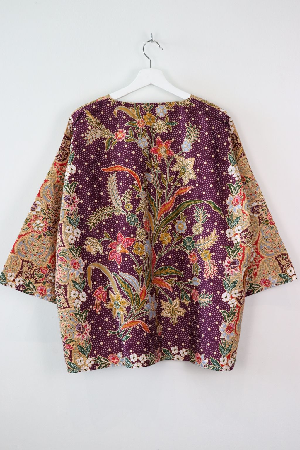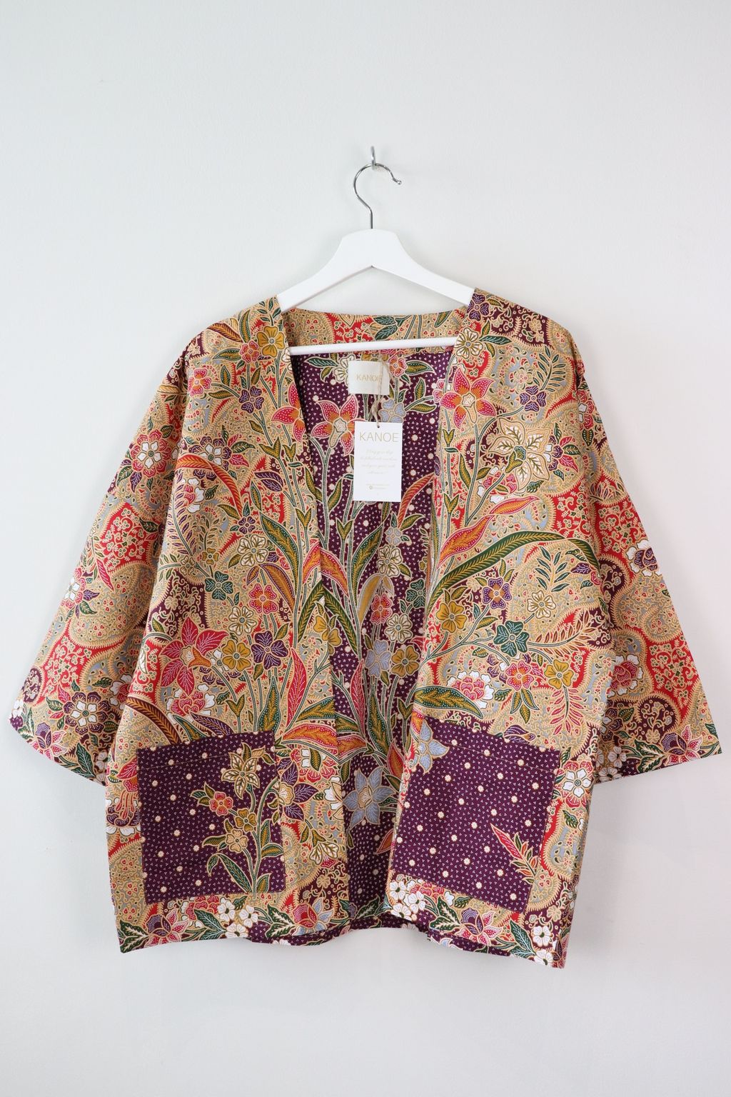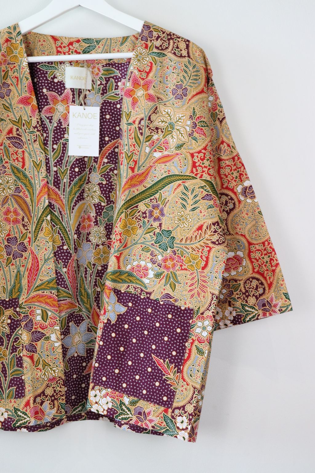 When we are stuck at home wearing a basic spaghetti strap top at home and the door bell rings, throw on this kimono before heading out to collect that parcel hehe. Or if your boss calls you last minute for a zoom call. Throw on this batik kimono :p