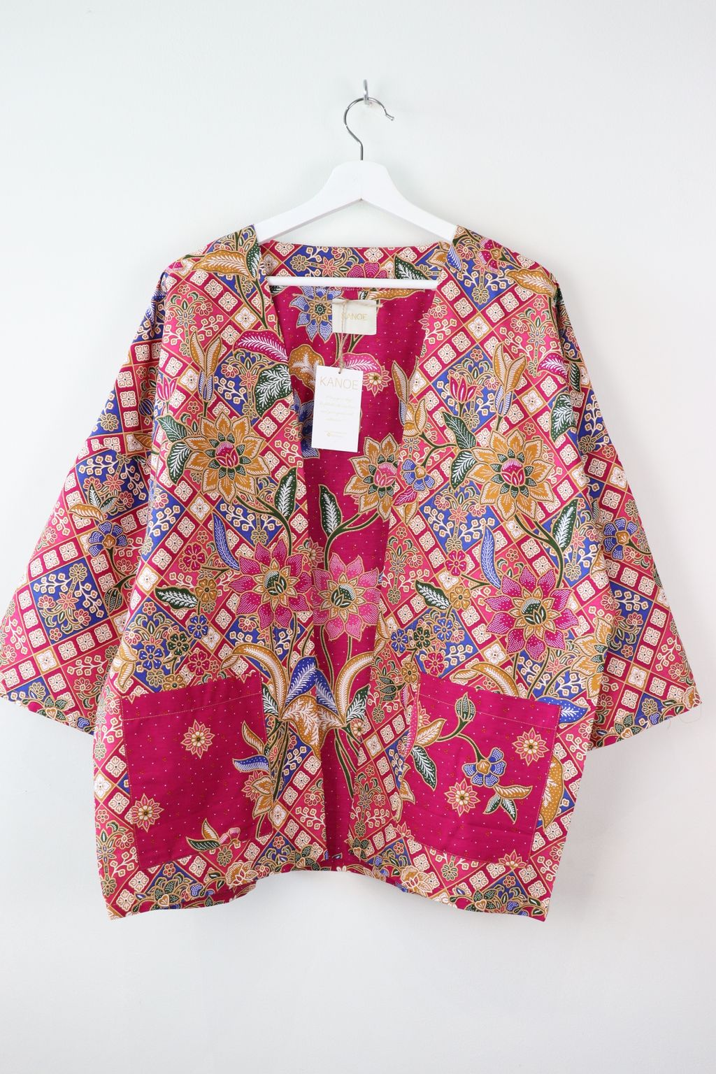 Our batik kimono worn over your basics will add that beautiful Indo-Malayan cultural touch that reminds you of your heritage or just to appreciate the art of our region. Keeps you feeling comfortable while indoors and great for those chilly rainy days. Definitely a piece for you to wear throughout the seasons. Made of 100% cotton, they are breathable and cooling, yet keeping you warm enough for comfort while indoors in the air conditioning.