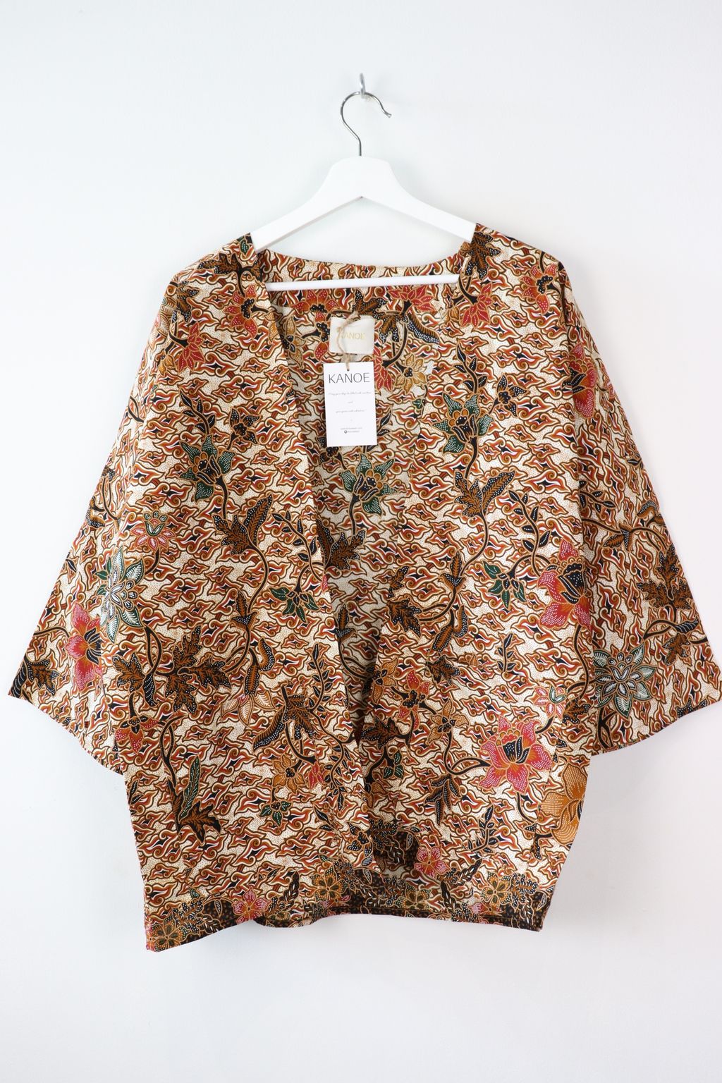 When we are stuck at home wearing a basic spaghetti strap top at home and the door bell rings, throw on this kimono before heading out to collect that parcel hehe. Or if your boss calls you last minute for a zoom call. Throw on this batik kimono :p