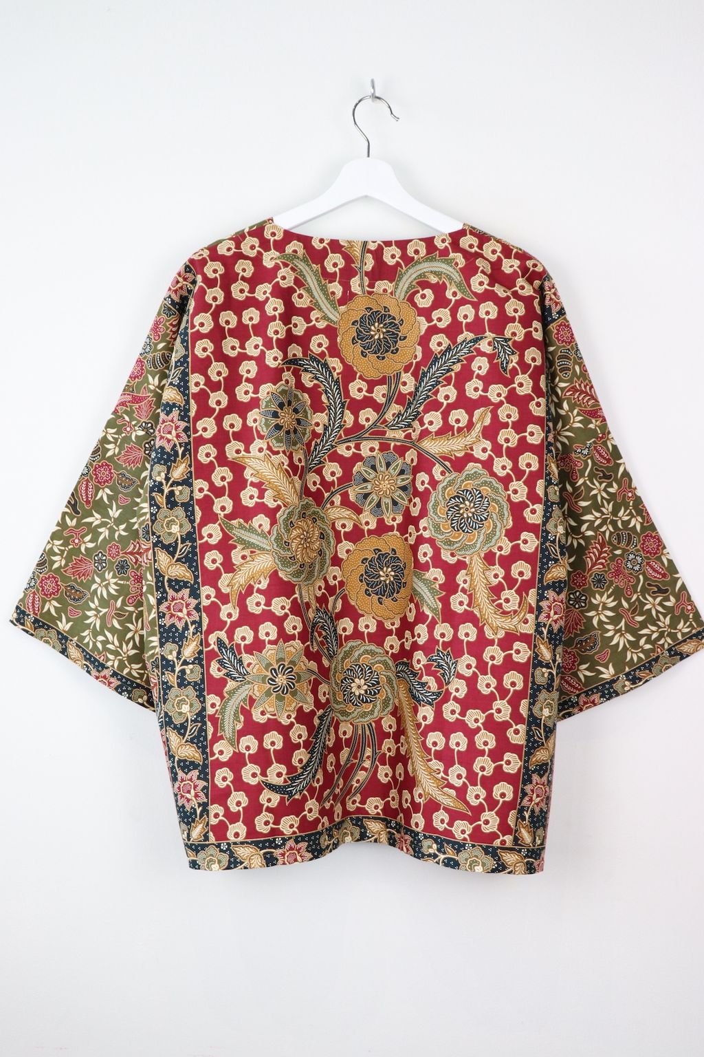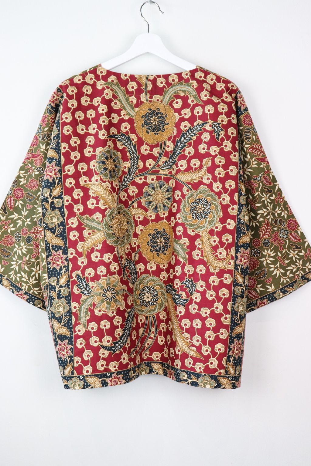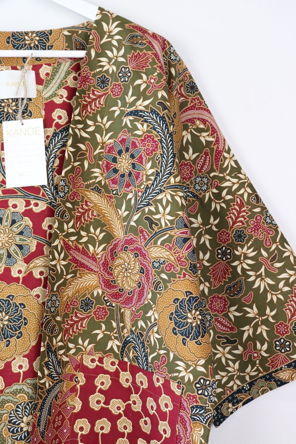 Our batik kimono worn over your basics will add that beautiful Indo-Malayan cultural touch that reminds you of your heritage or just to appreciate the art of our region. Keeps you feeling comfortable while indoors and great for those chilly rainy days. Definitely a piece for you to wear throughout the seasons. Made of 100% cotton, they are breathable and cooling, yet keeping you warm enough for comfort while indoors in the air conditioning.