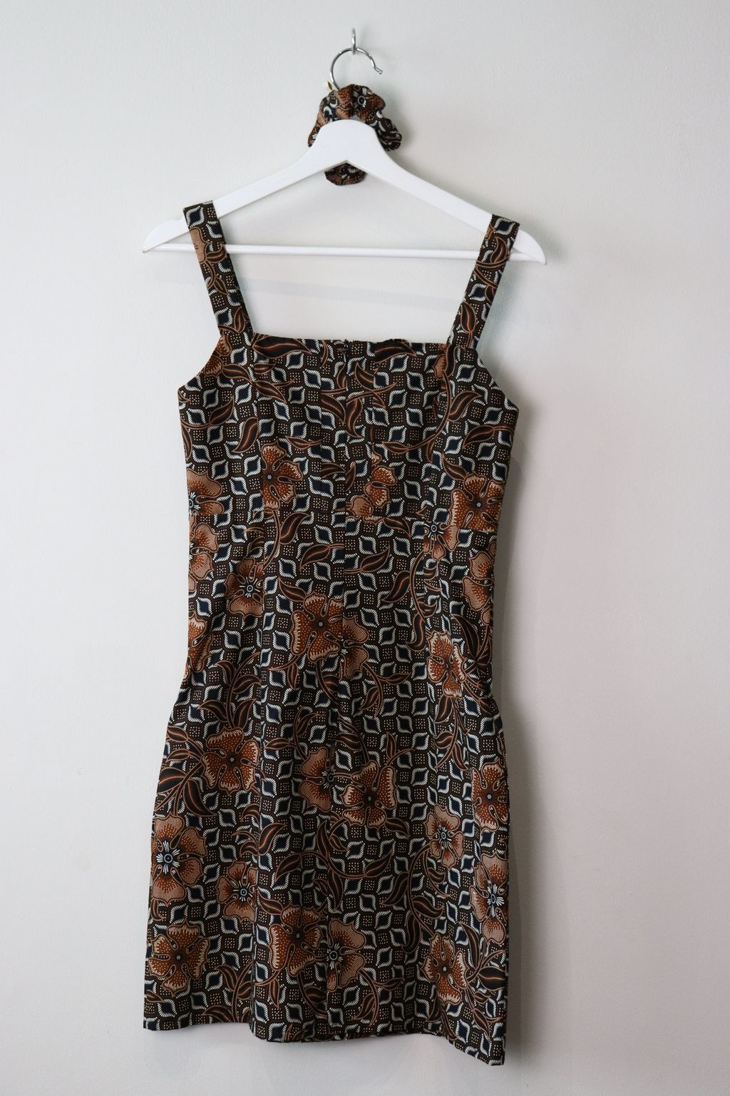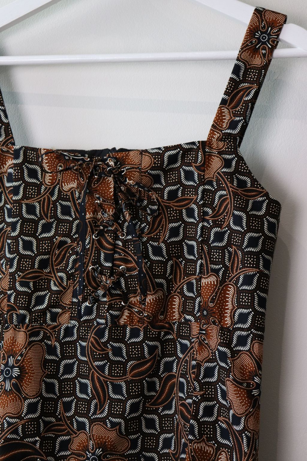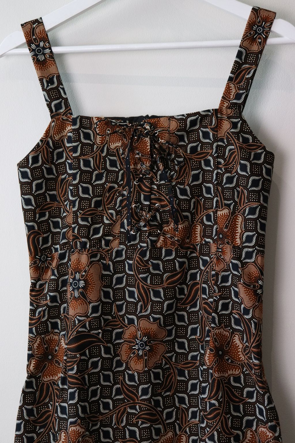 These lovely dresses are made in darker mono-tone hues. Made of 100% cotton with pockets on each side. Perfect for a casual day out while looking batik chic. Love the lace up front detail of this dress.
