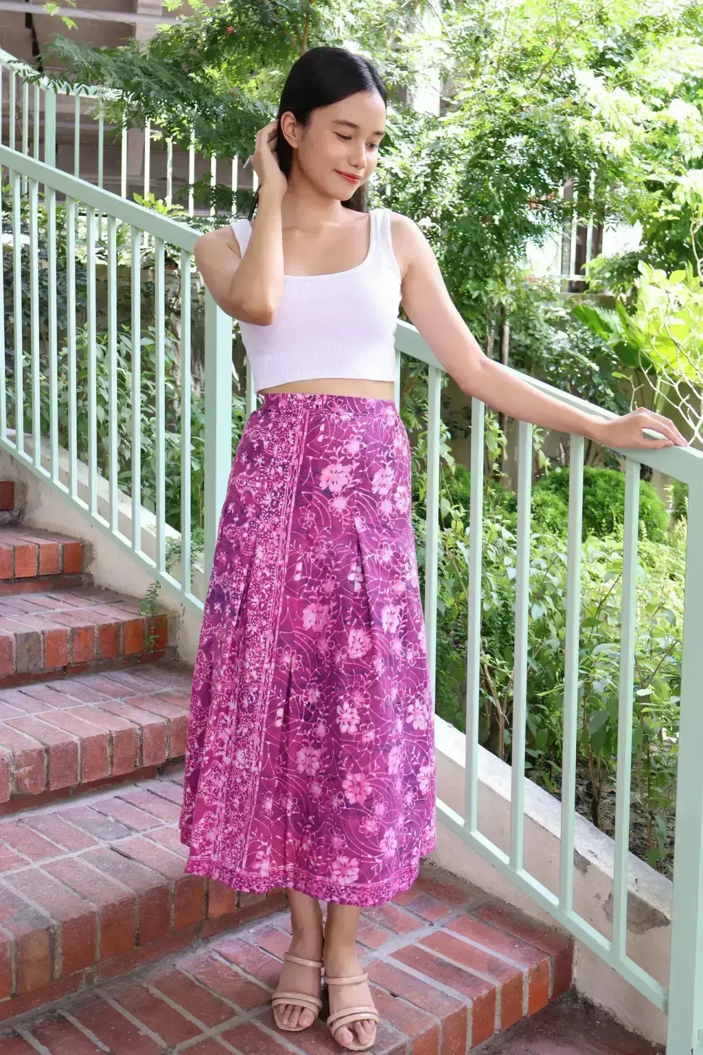 Batik Pleated Skirt - Lavender Tide [HandMade]