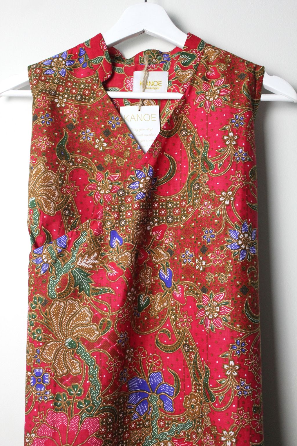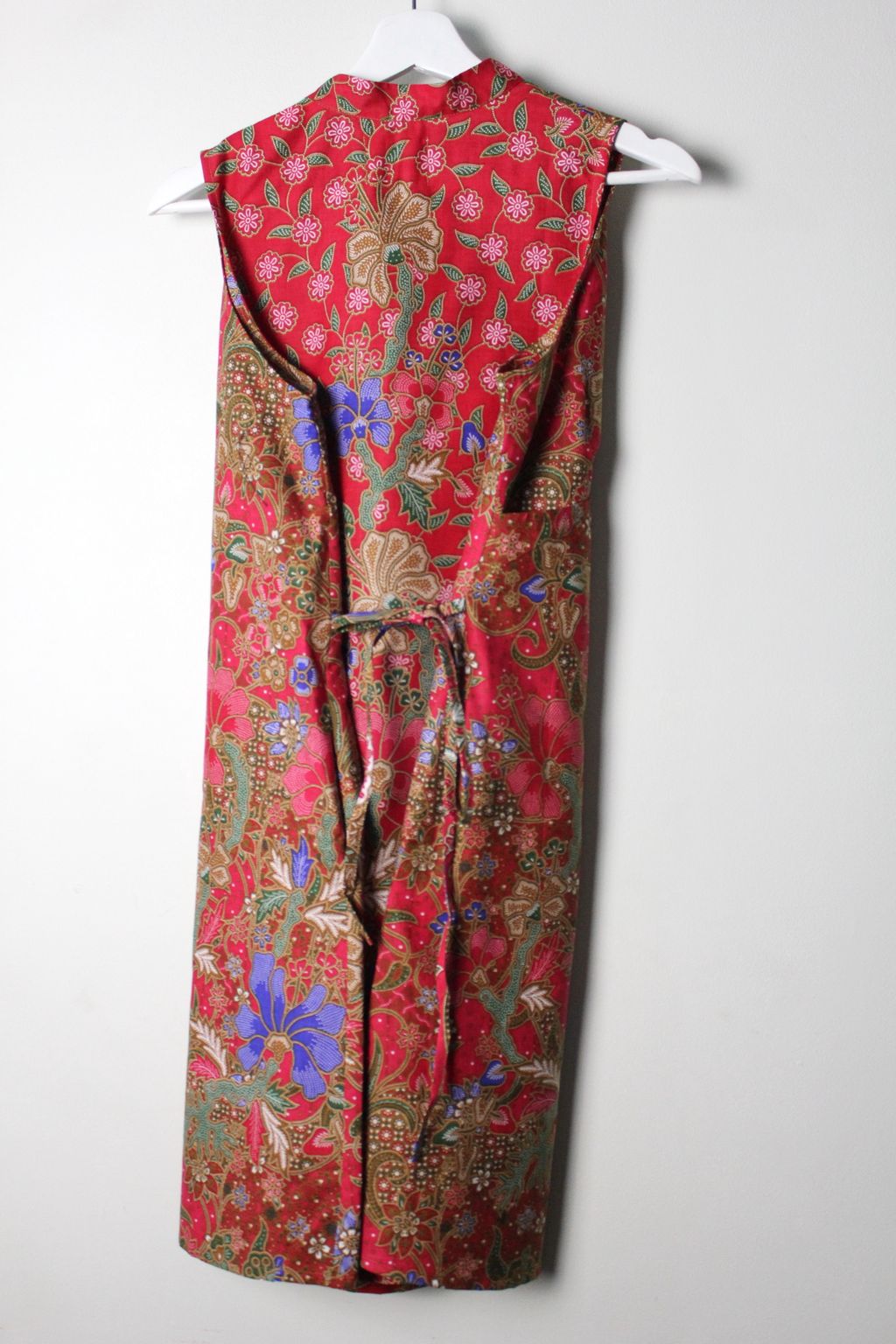 Made of 100% Cotton Batik. With pockets on both size and a waist ribbon that can be tied either front or back to give a fitted look !