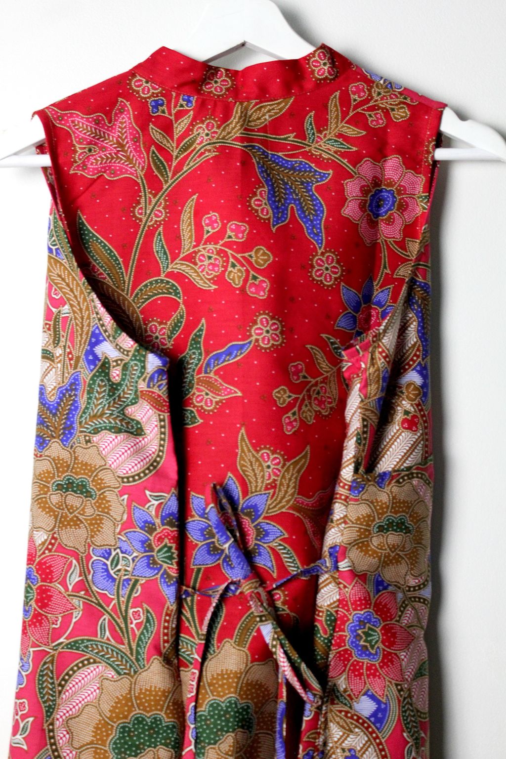 Made of 100% Cotton Batik. With pockets on both size and a waist ribbon that can be tied either front or back to give a fitted look !
