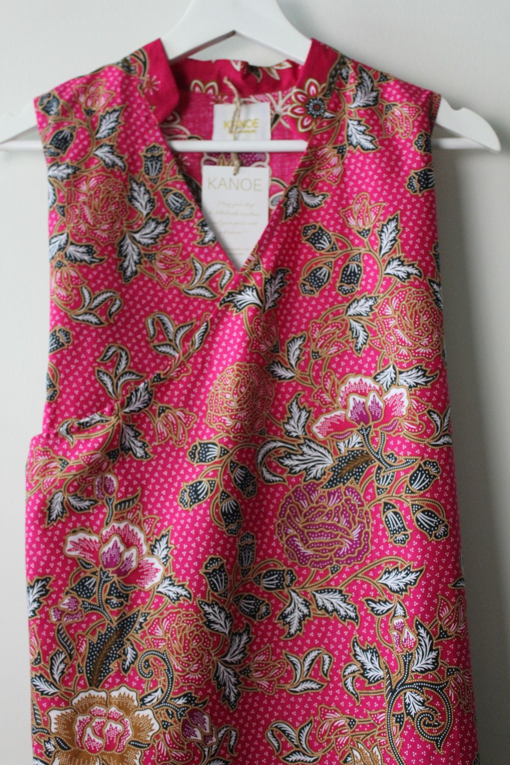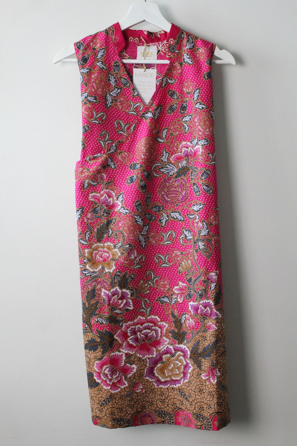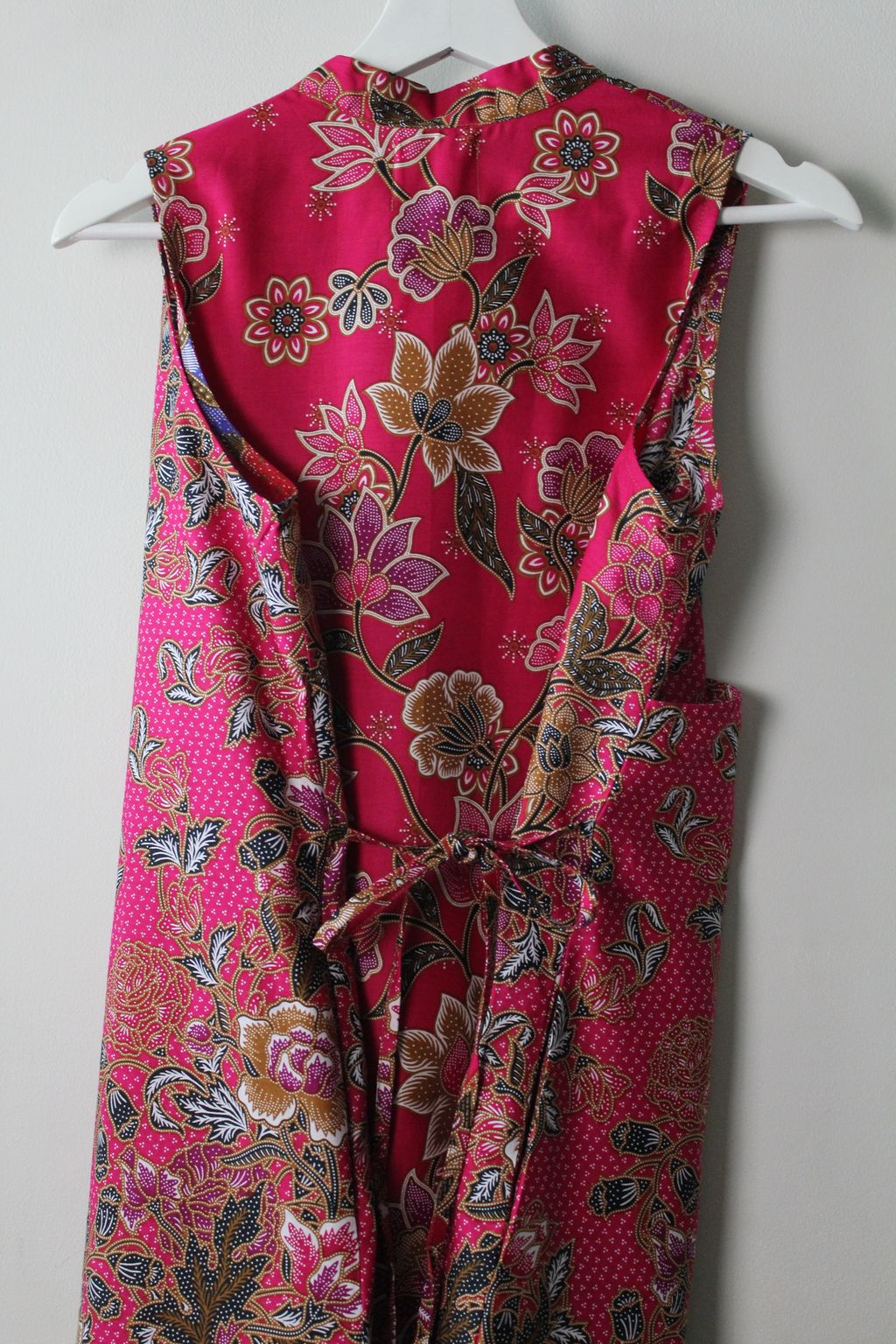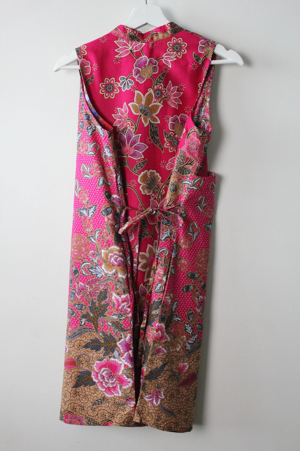 Made of 100% Cotton Batik. With pockets on both size and a waist ribbon that can be tied either front or back to give a fitted look !