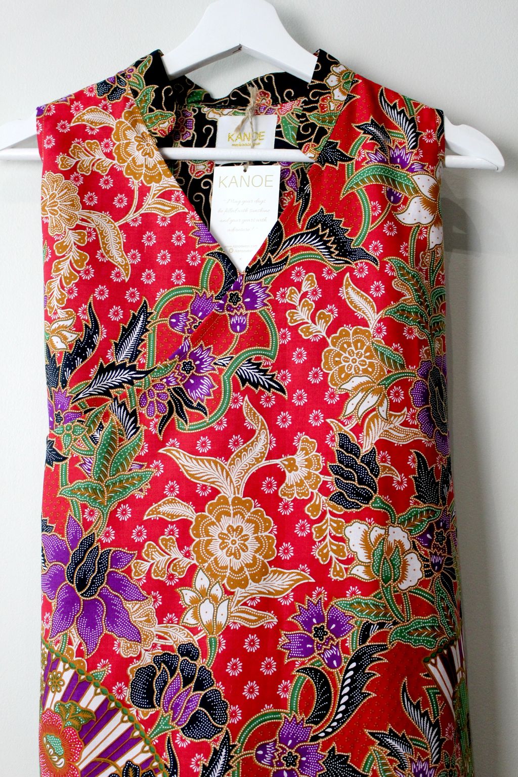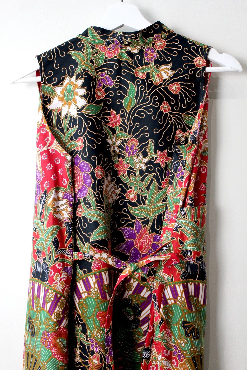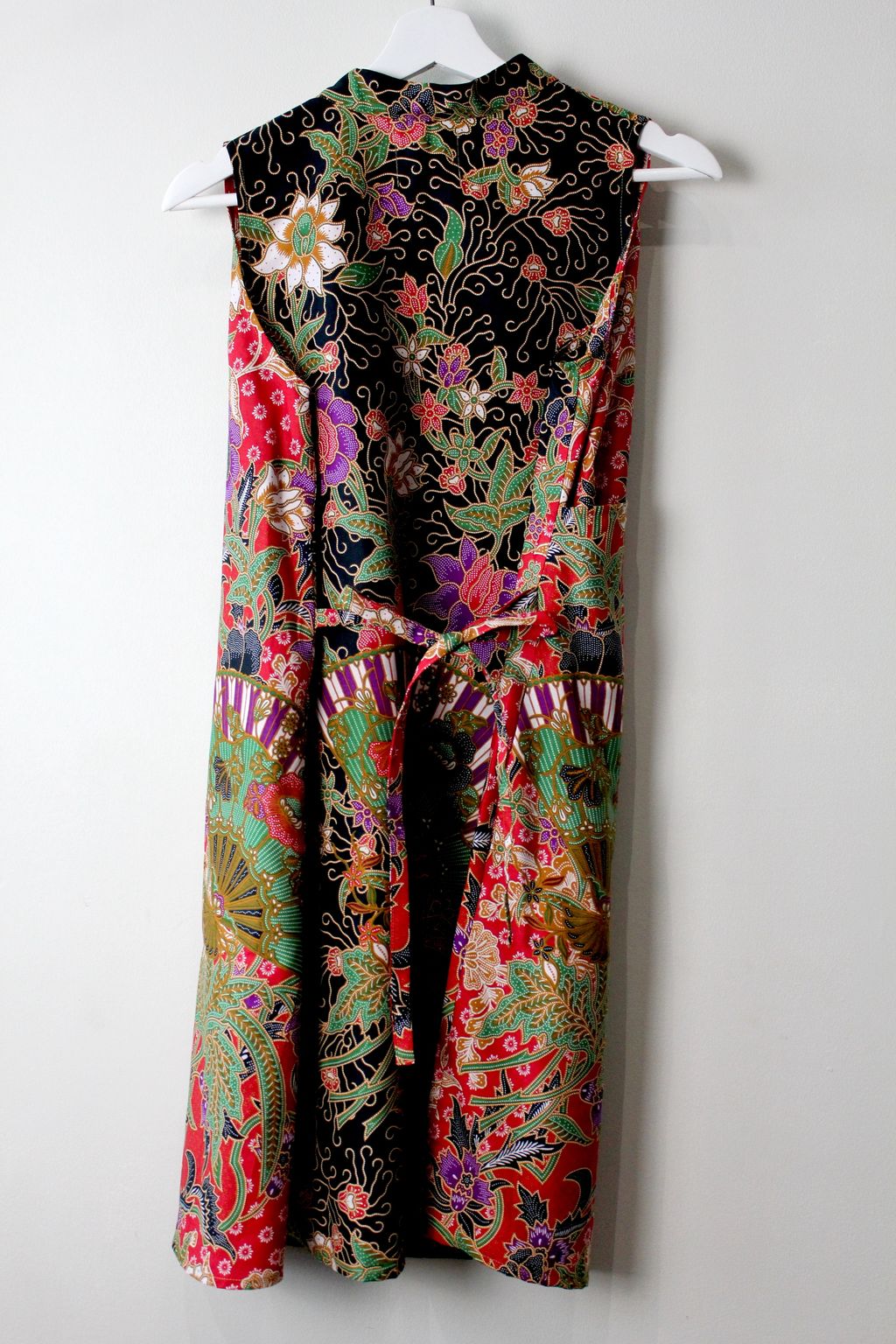 Made of 100% Cotton Batik. With pockets on both size and a waist ribbon that can be tied either front or back to give a fitted look !