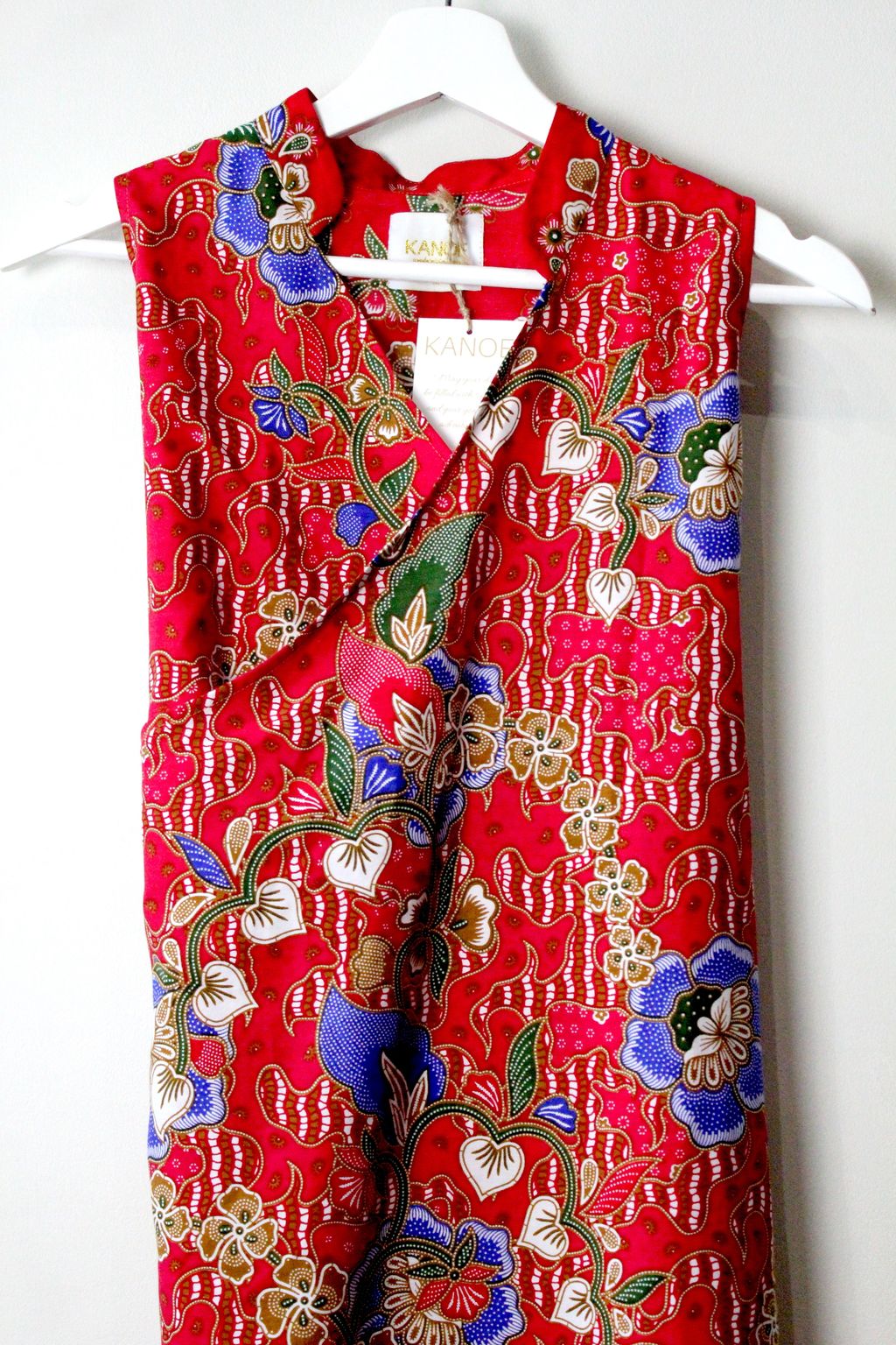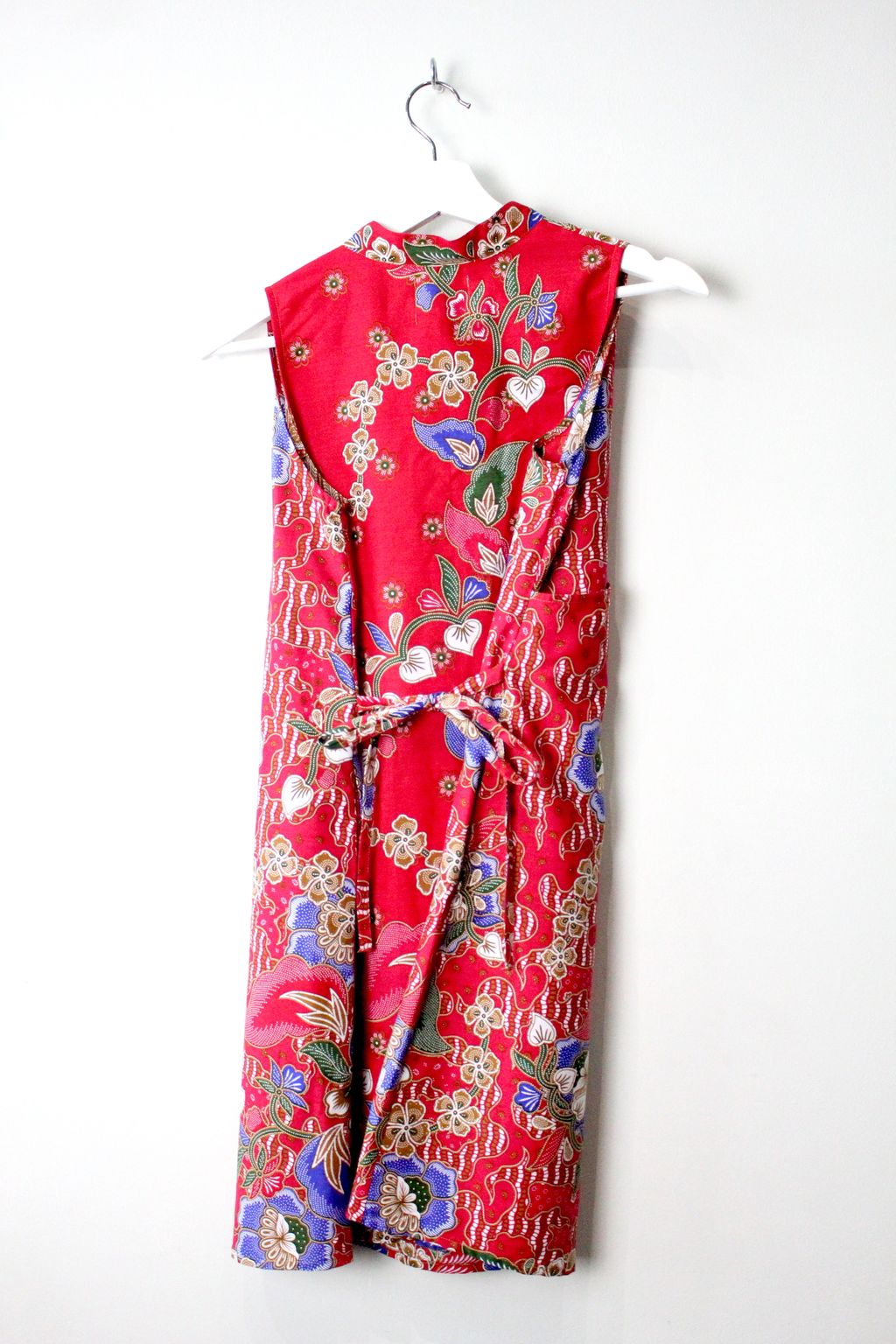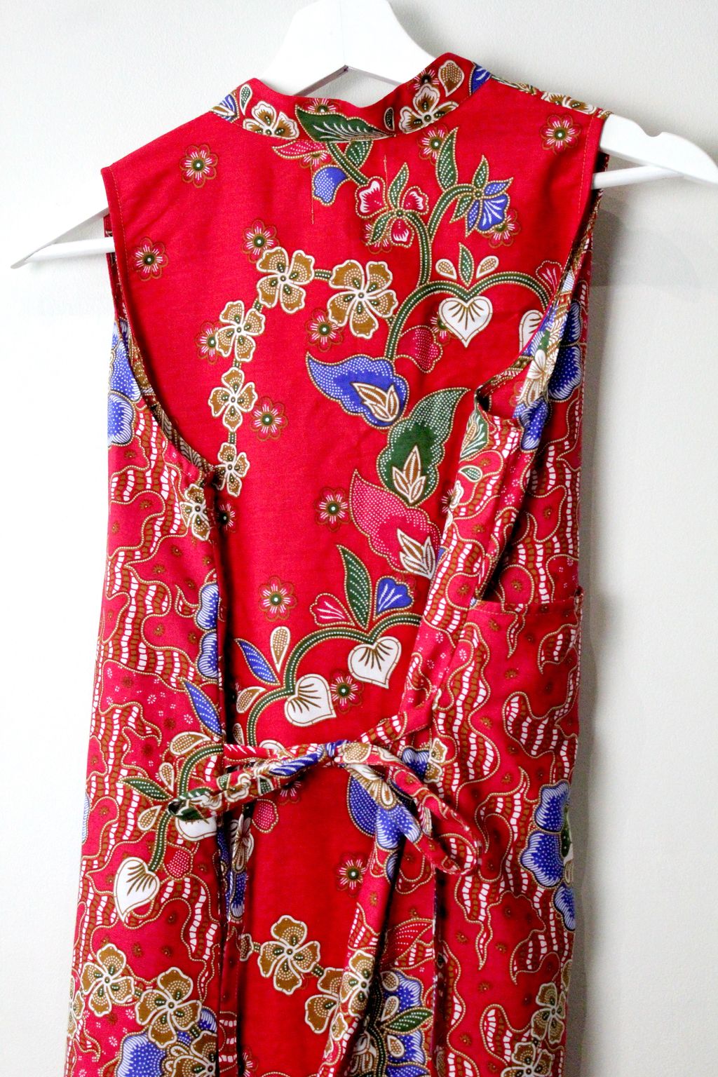 Made of 100% Cotton Batik. With pockets on both size and a waist ribbon that can be tied either front or back to give a fitted look !