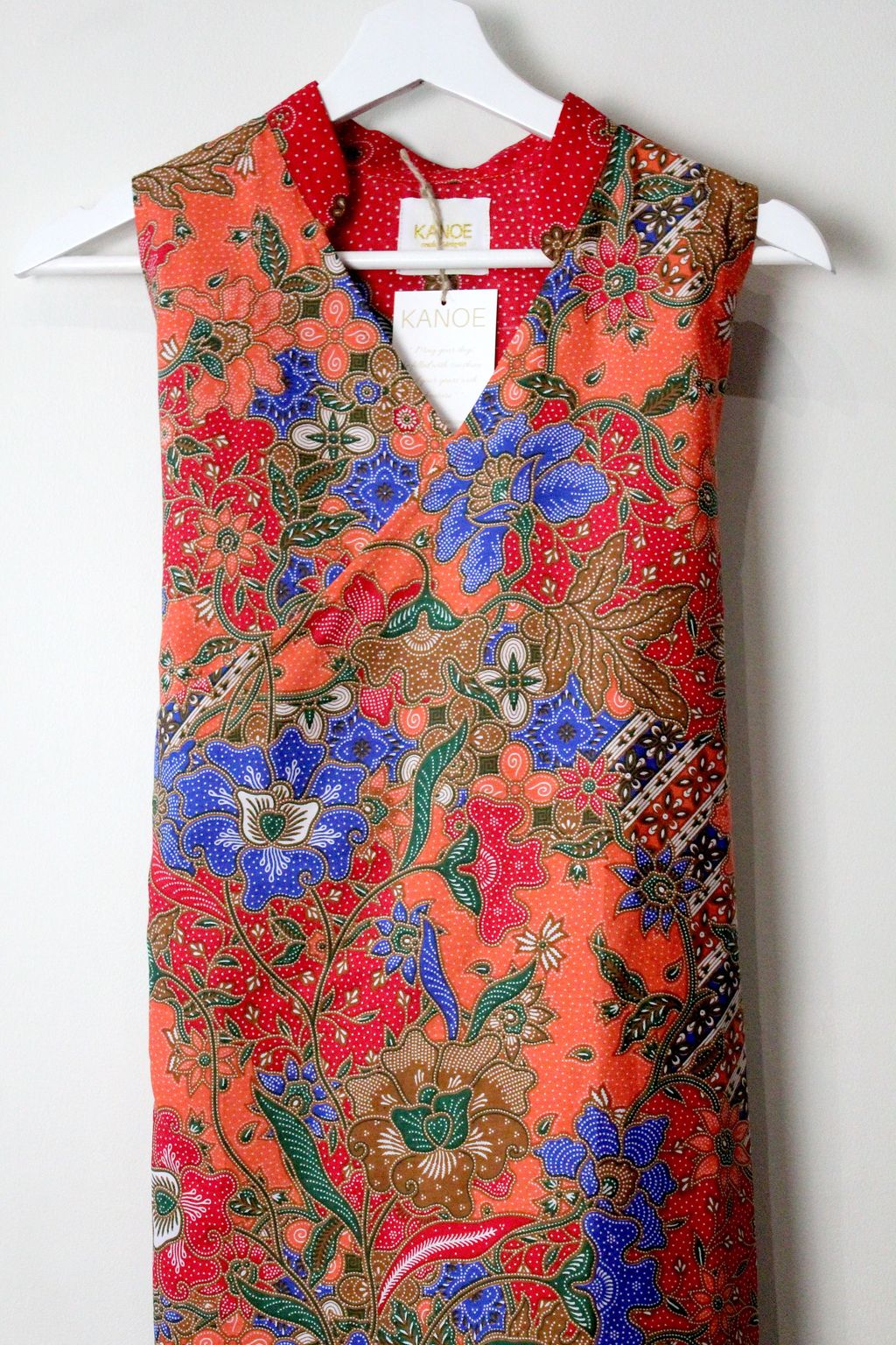Made of 100% Cotton Batik. With pockets on both size and a waist ribbon that can be tied either front or back to give a fitted look !