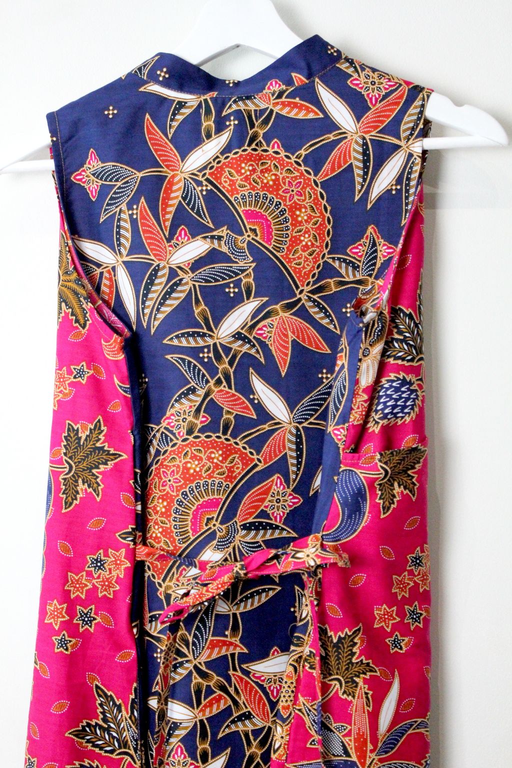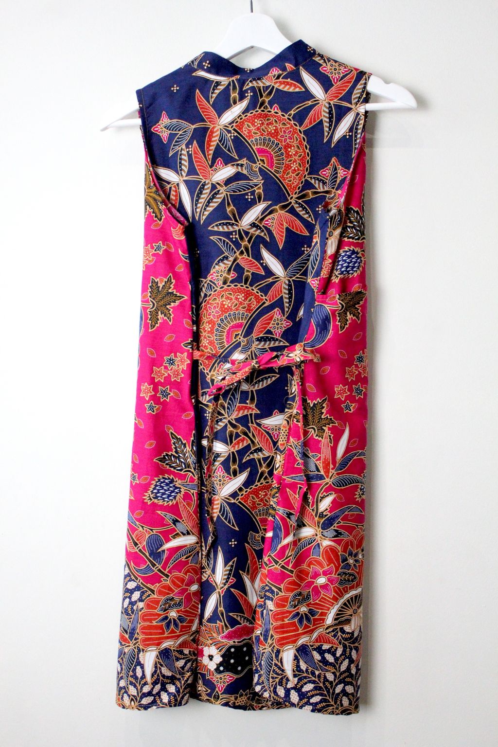 Made of 100% Cotton Batik. With pockets on both size and a waist ribbon that can be tied either front or back to give a fitted look !