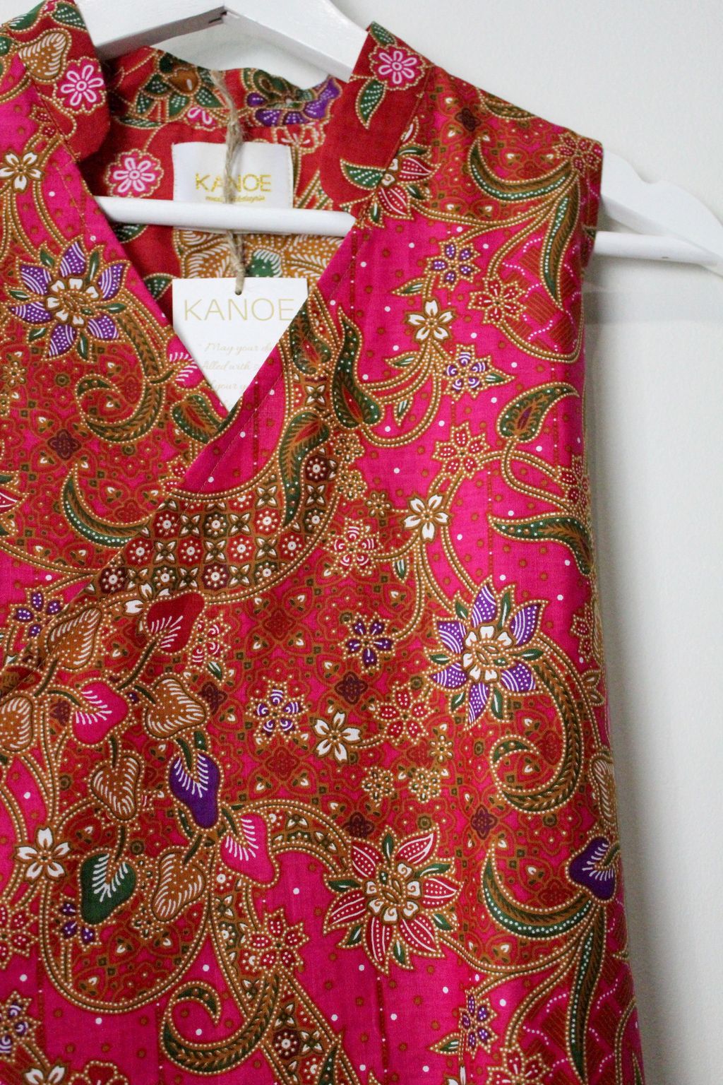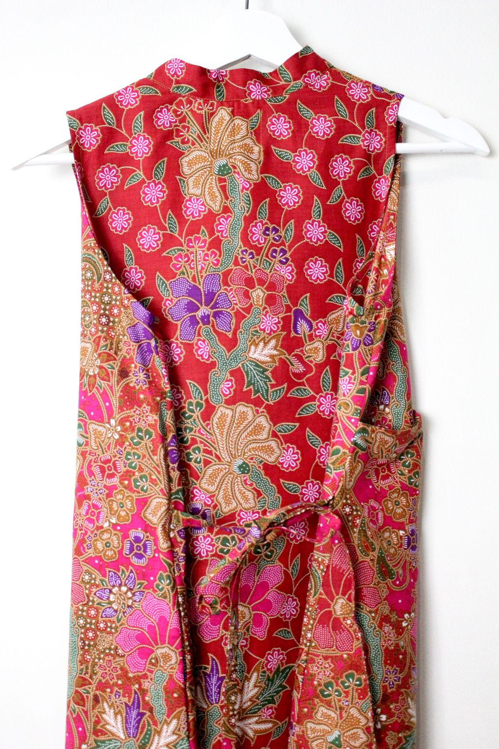 Made of 100% Cotton Batik. With pockets on both size and a waist ribbon that can be tied either front or back to give a fitted look !