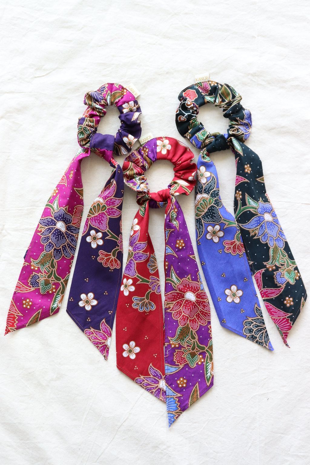 Batik Scrunchie w/ Ribbon - Violet (Set of 3)