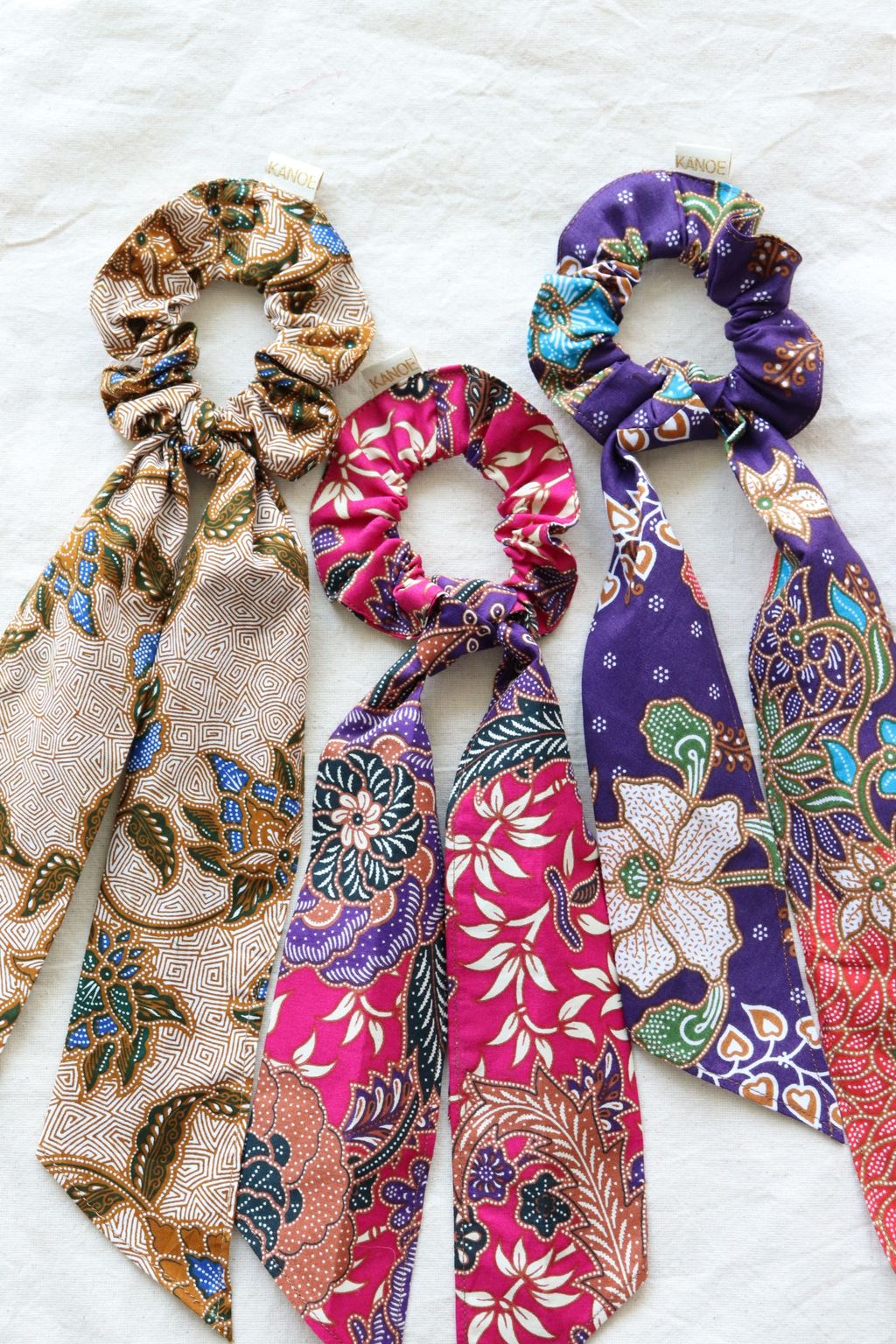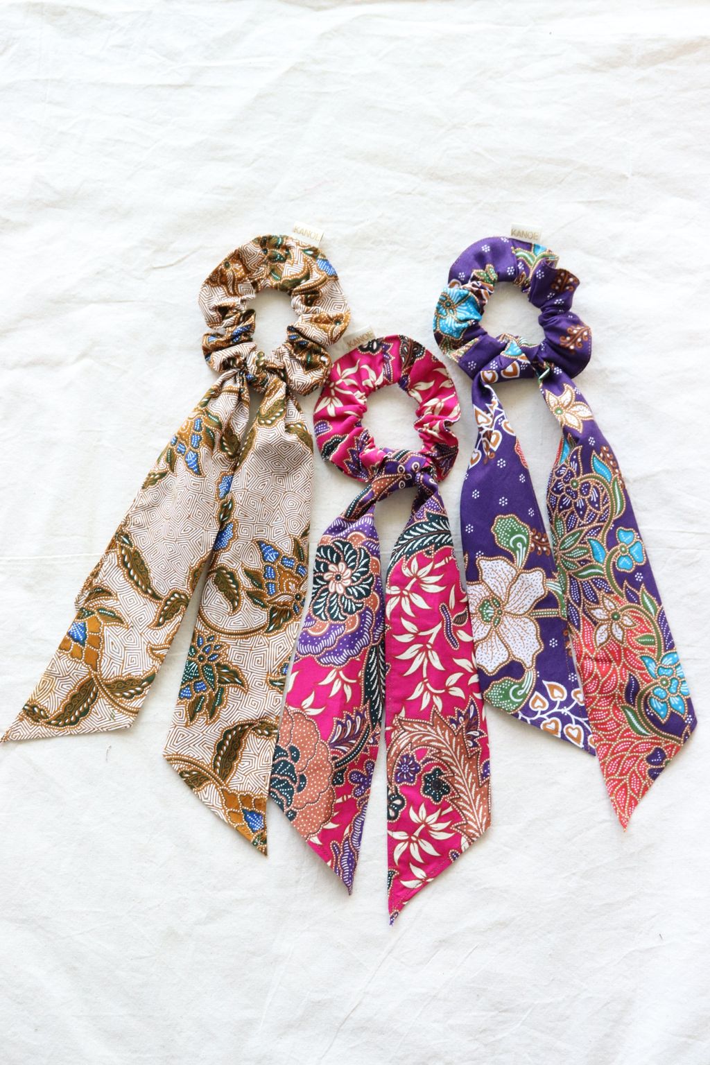 Batik Scrunchie w/ Ribbon - Orchid (Set of 3)