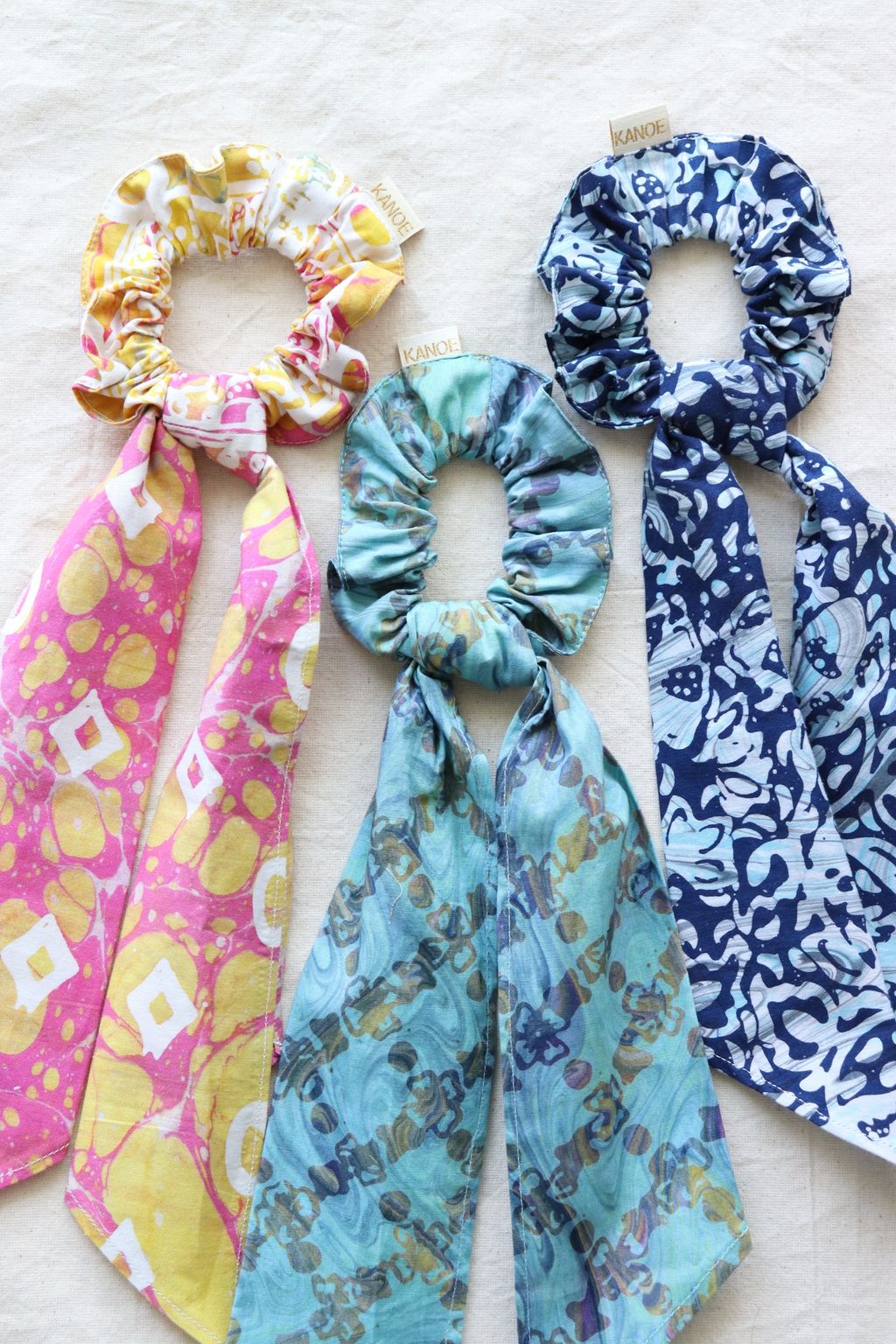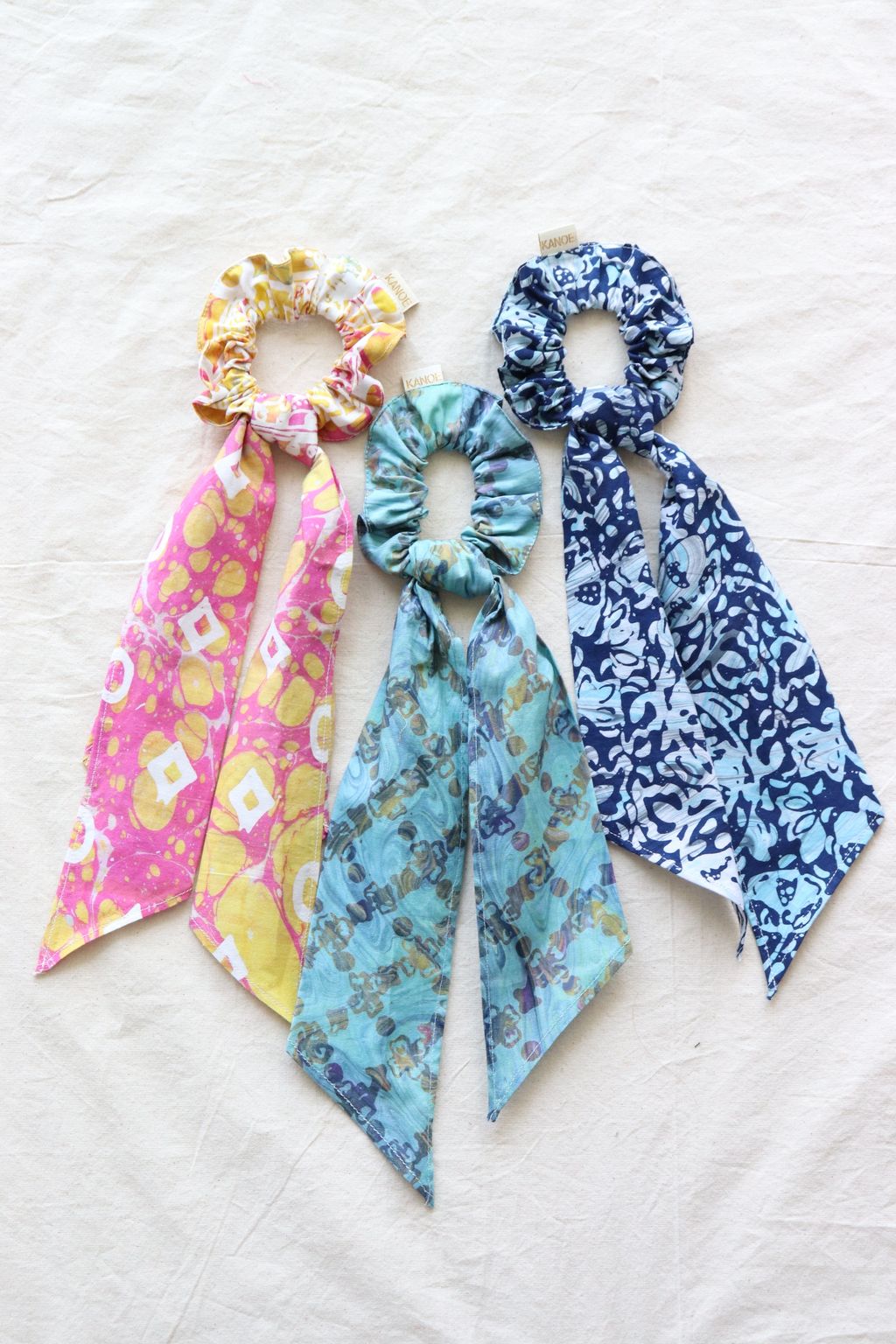Batik Scrunchie w/ Ribbon - Tulip (Handstamped Batik) (Set of 3)