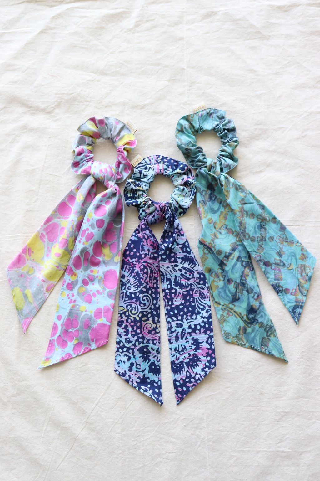 Batik Scrunchie w/ Ribbon - Aster (Handstamped Batik) (Set of 3)