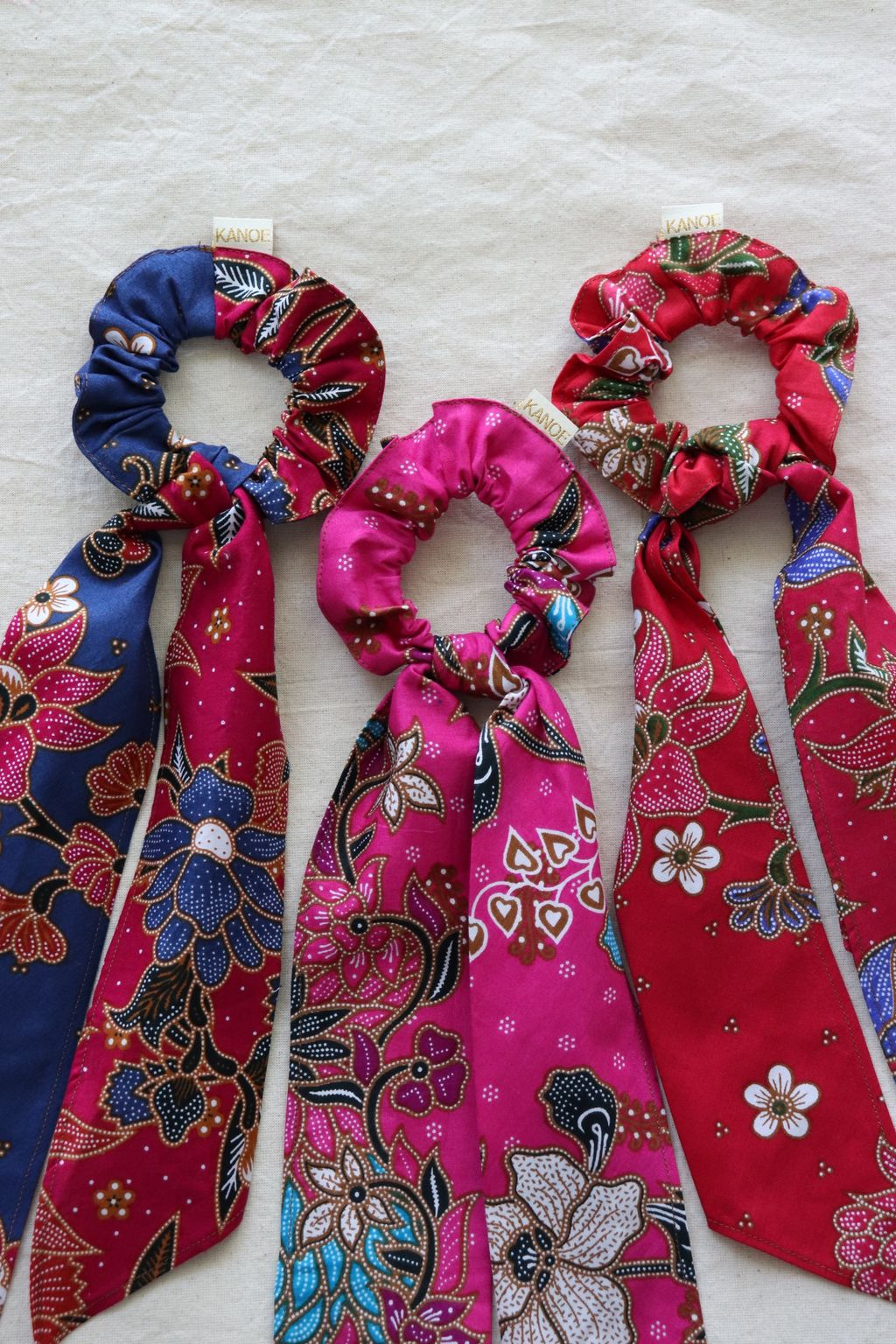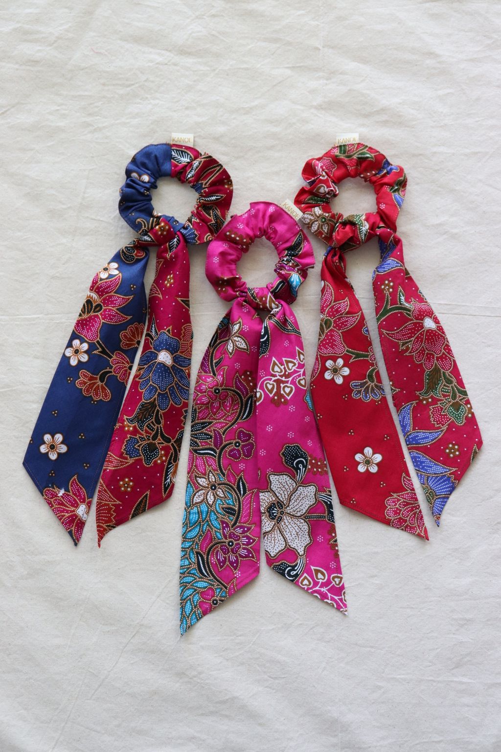 Batik Scrunchie w/ Ribbon - Dahlia (Set of 3)