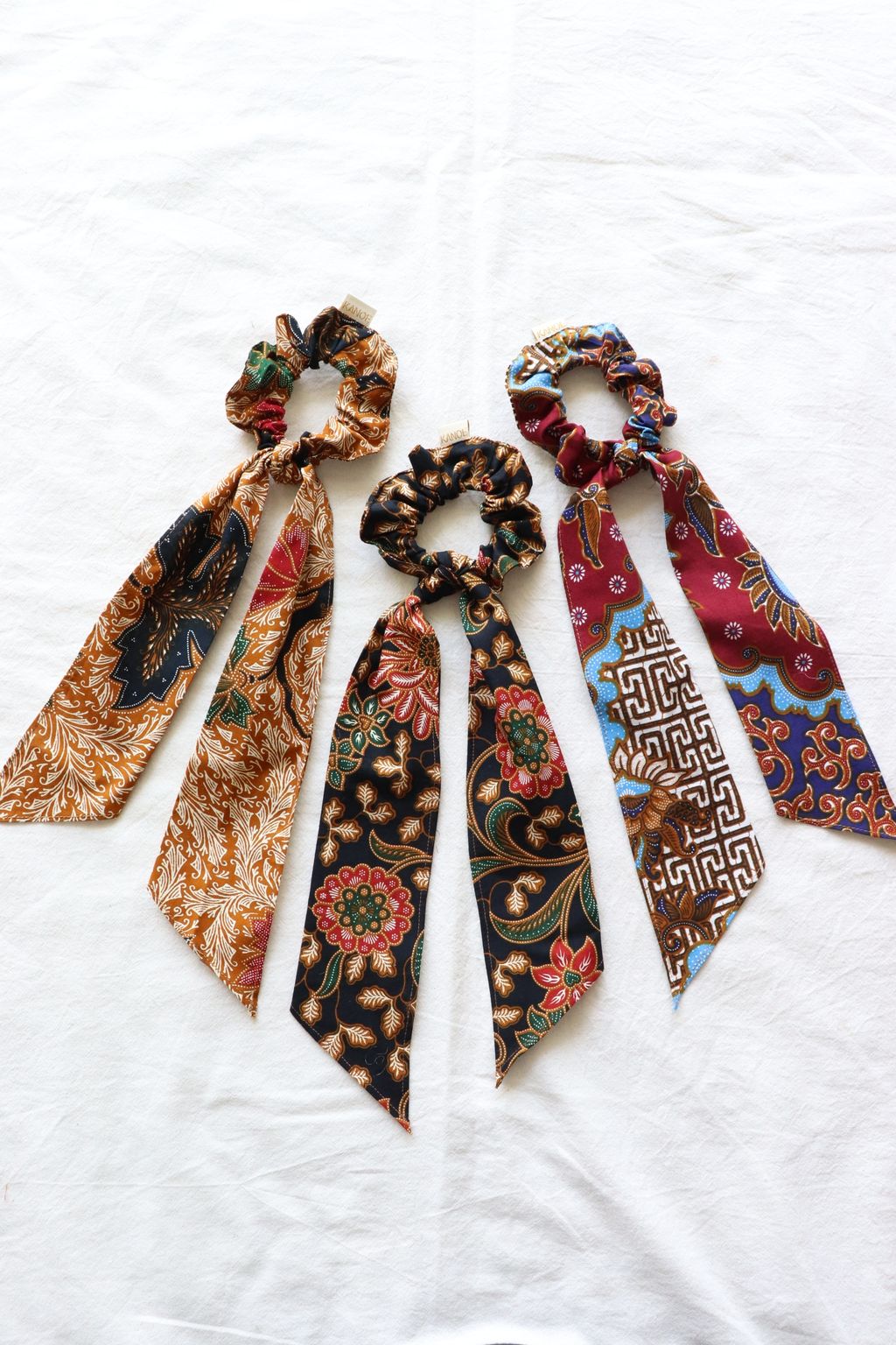Batik Scrunchie w/ Ribbon [Set of 3] - Chip