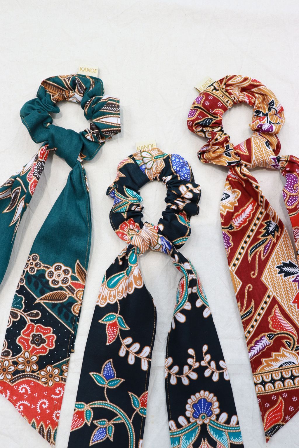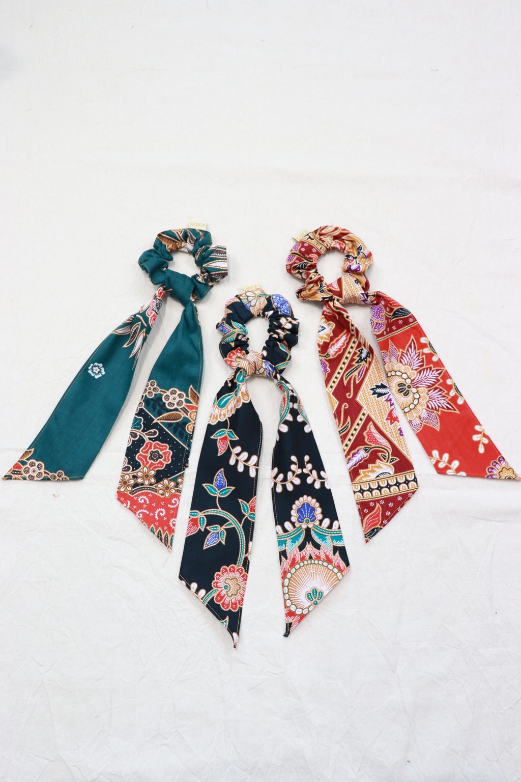 Batik Scrunchie w/ Ribbon [Set of 3] - Corinne