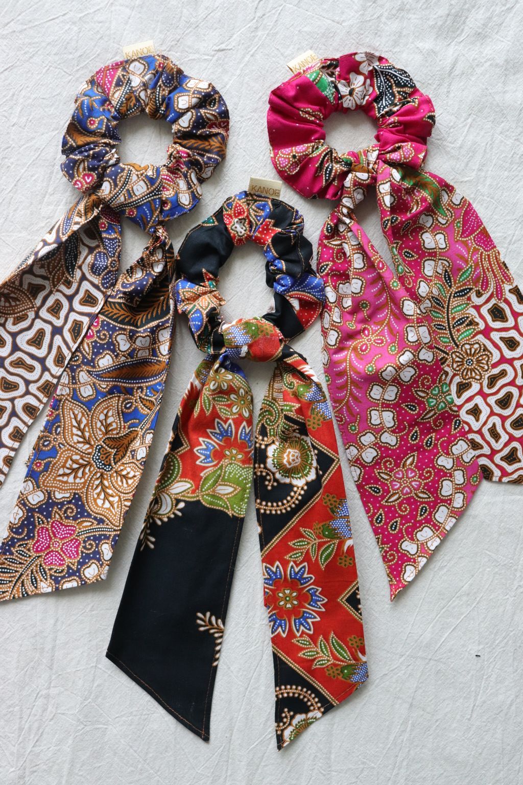 Batik Scrunchie w/ Ribbon [Set of 3] - Ashley