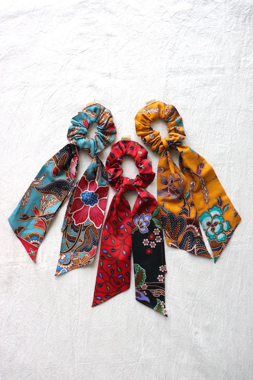 Batik Scrunchie w/ Ribbon [Set of 3] - Chloe