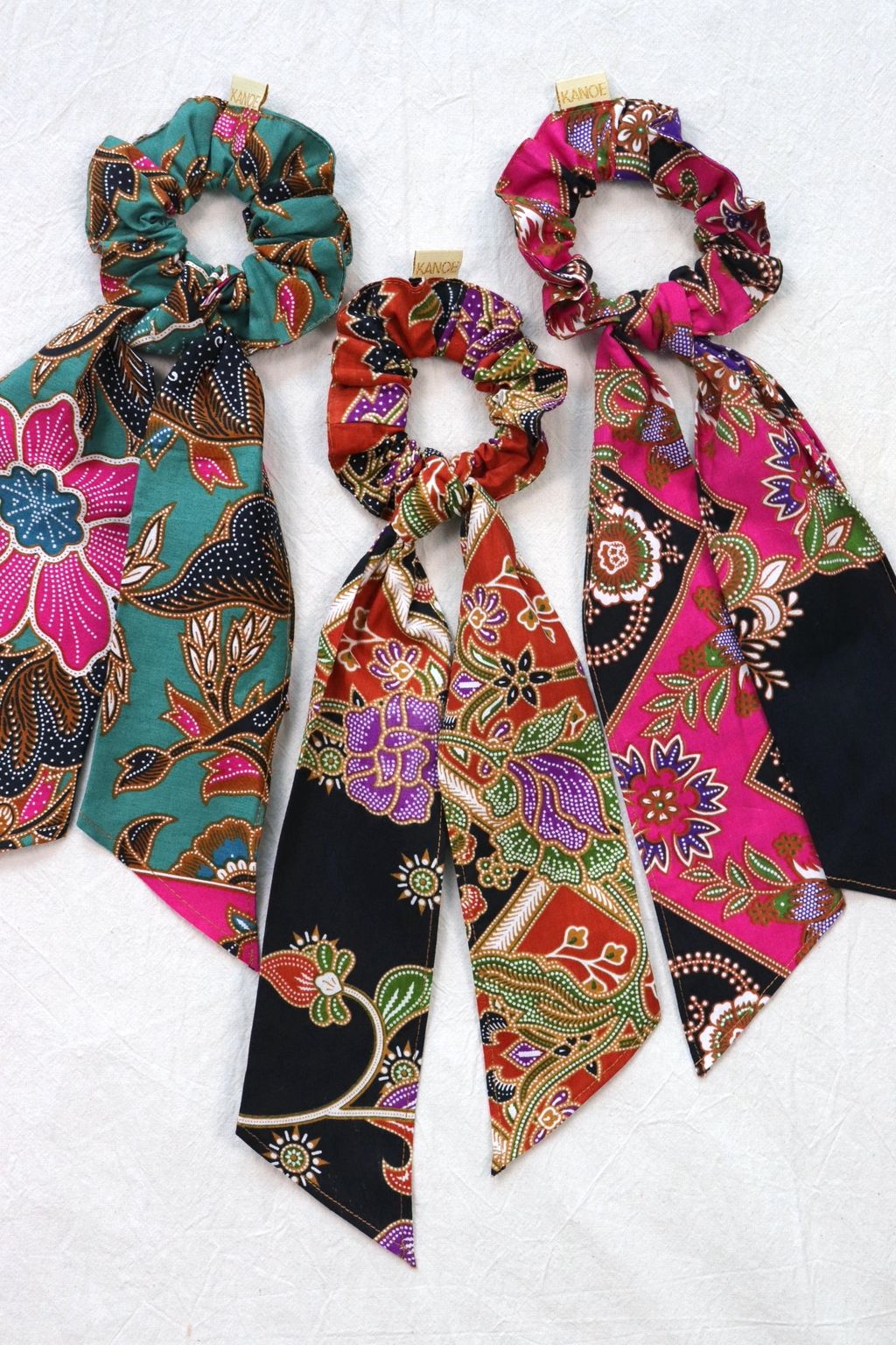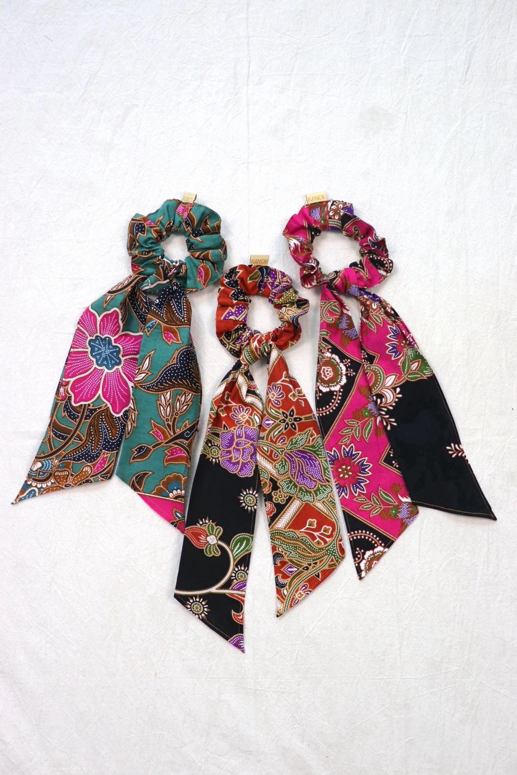 Batik Scrunchie w/ Ribbon [Set of 3] - Nora