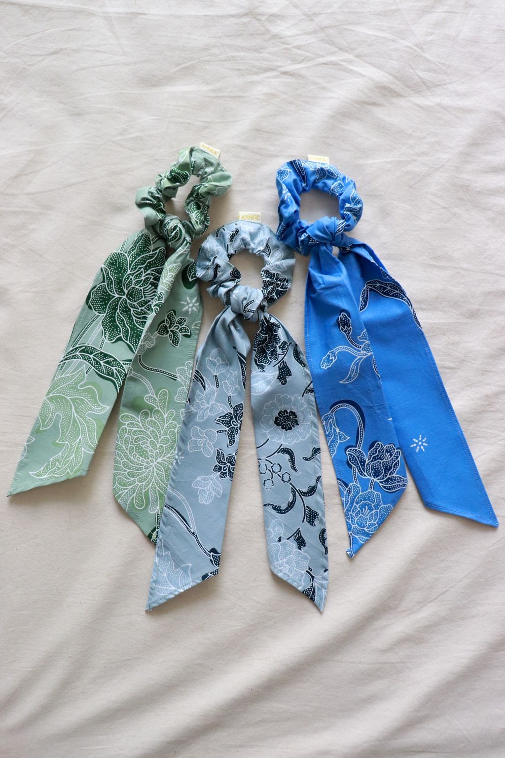 Batik Scrunchie w/ Ribbon [Set of 3] - Forget-Me-Nots