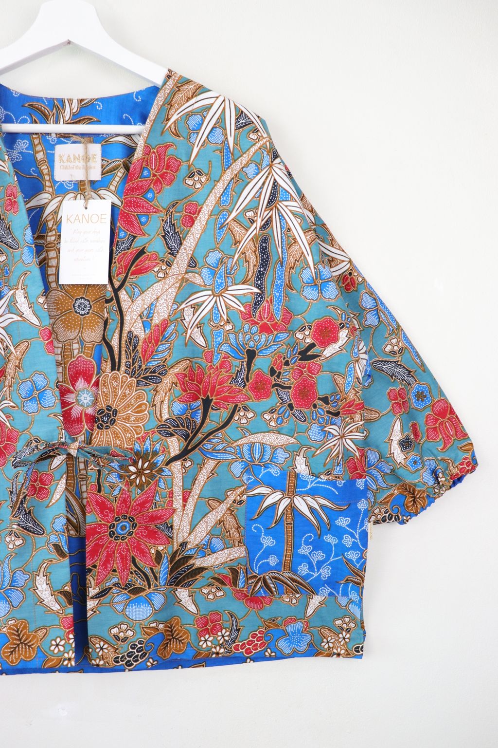 Our batik kimono worn over your basics will add that beautiful Indo-Malayan cultural touch that reminds you of your heritage or just to appreciate the art of our region. Keeps you feeling comfortable while indoors and great for those chilly rainy days. Definitely a piece for you to wear throughout the seasons. Made of 100% cotton, they are breathable and cooling, yet keeping you warm enough for comfort while indoors in the air conditioning.