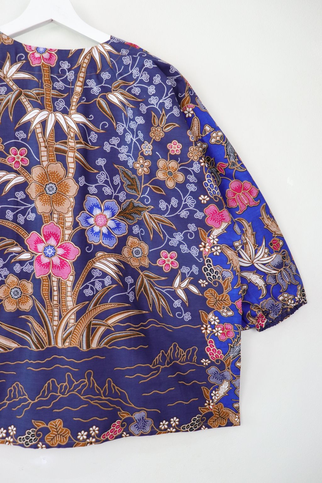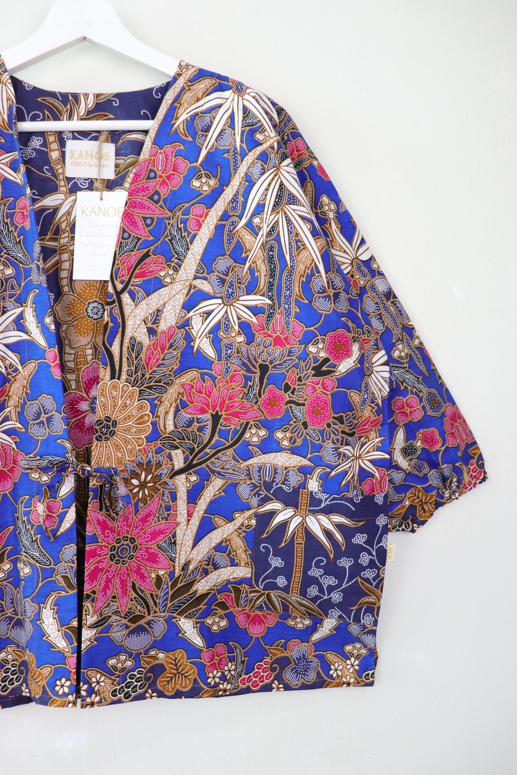 When we are stuck at home wearing a basic spaghetti strap top at home and the door bell rings, throw on this kimono before heading out to collect that parcel hehe. Or if your boss calls you last minute for a zoom call. Throw on this batik kimono :p