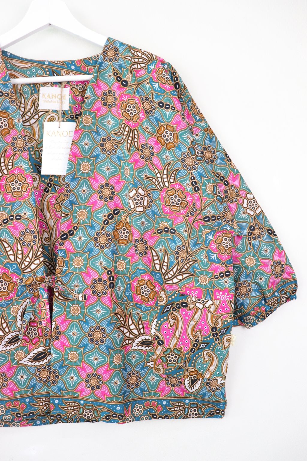Our batik kimono worn over your basics will add that beautiful Indo-Malayan cultural touch that reminds you of your heritage or just to appreciate the art of our region. Keeps you feeling comfortable while indoors and great for those chilly rainy days. Definitely a piece for you to wear throughout the seasons. Made of 100% cotton, they are breathable and cooling, yet keeping you warm enough for comfort while indoors in the air conditioning.