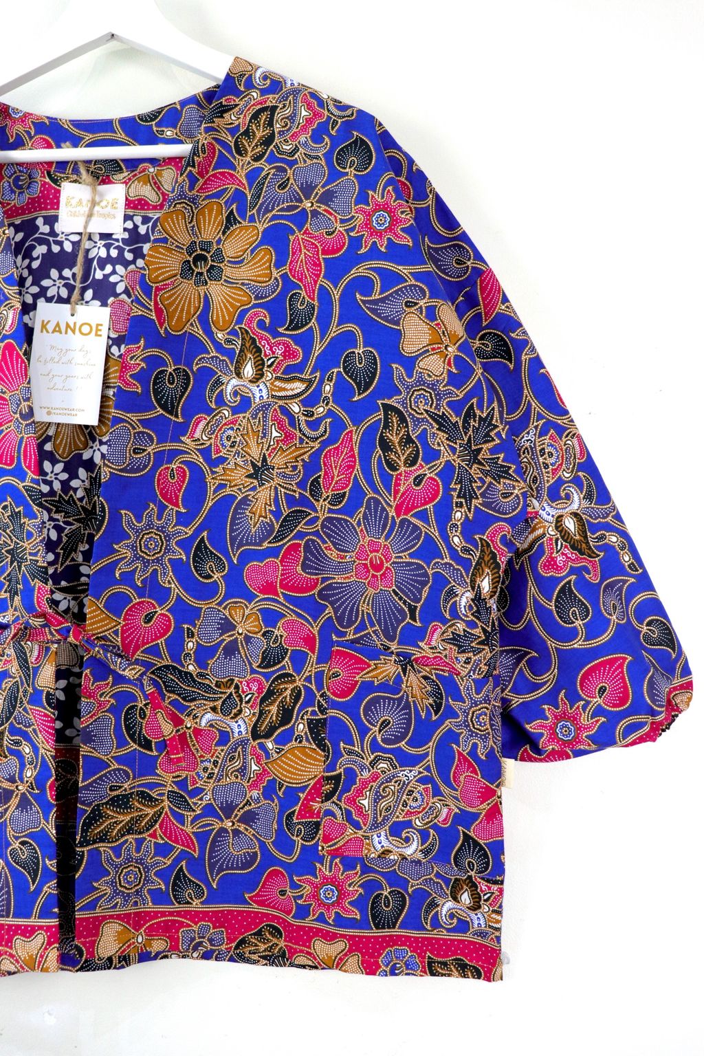 When we are stuck at home wearing a basic spaghetti strap top at home and the door bell rings, throw on this kimono before heading out to collect that parcel hehe. Or if your boss calls you last minute for a zoom call. Throw on this batik kimono :p