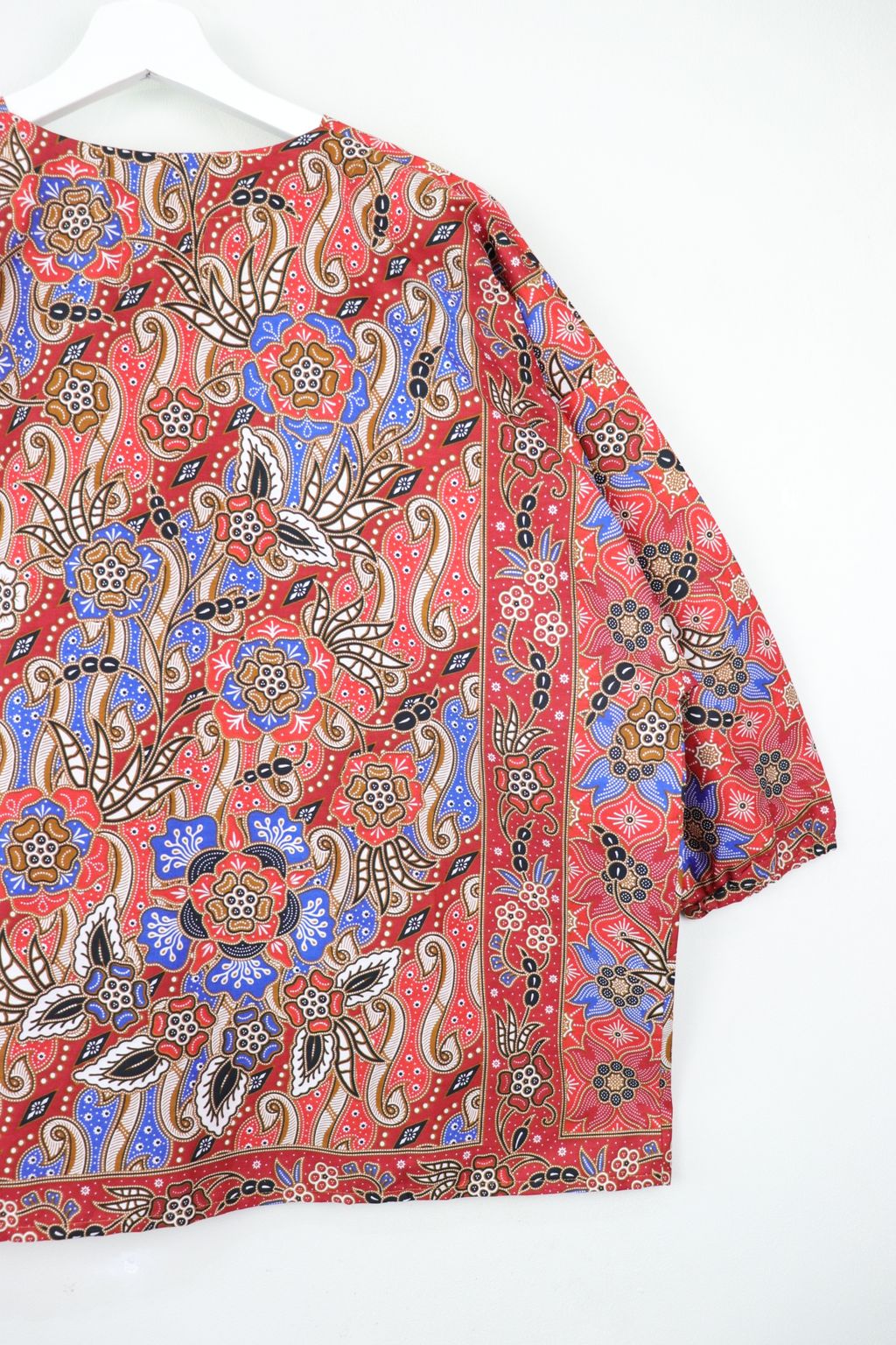 When we are stuck at home wearing a basic spaghetti strap top at home and the door bell rings, throw on this kimono before heading out to collect that parcel hehe. Or if your boss calls you last minute for a zoom call. Throw on this batik kimono :p