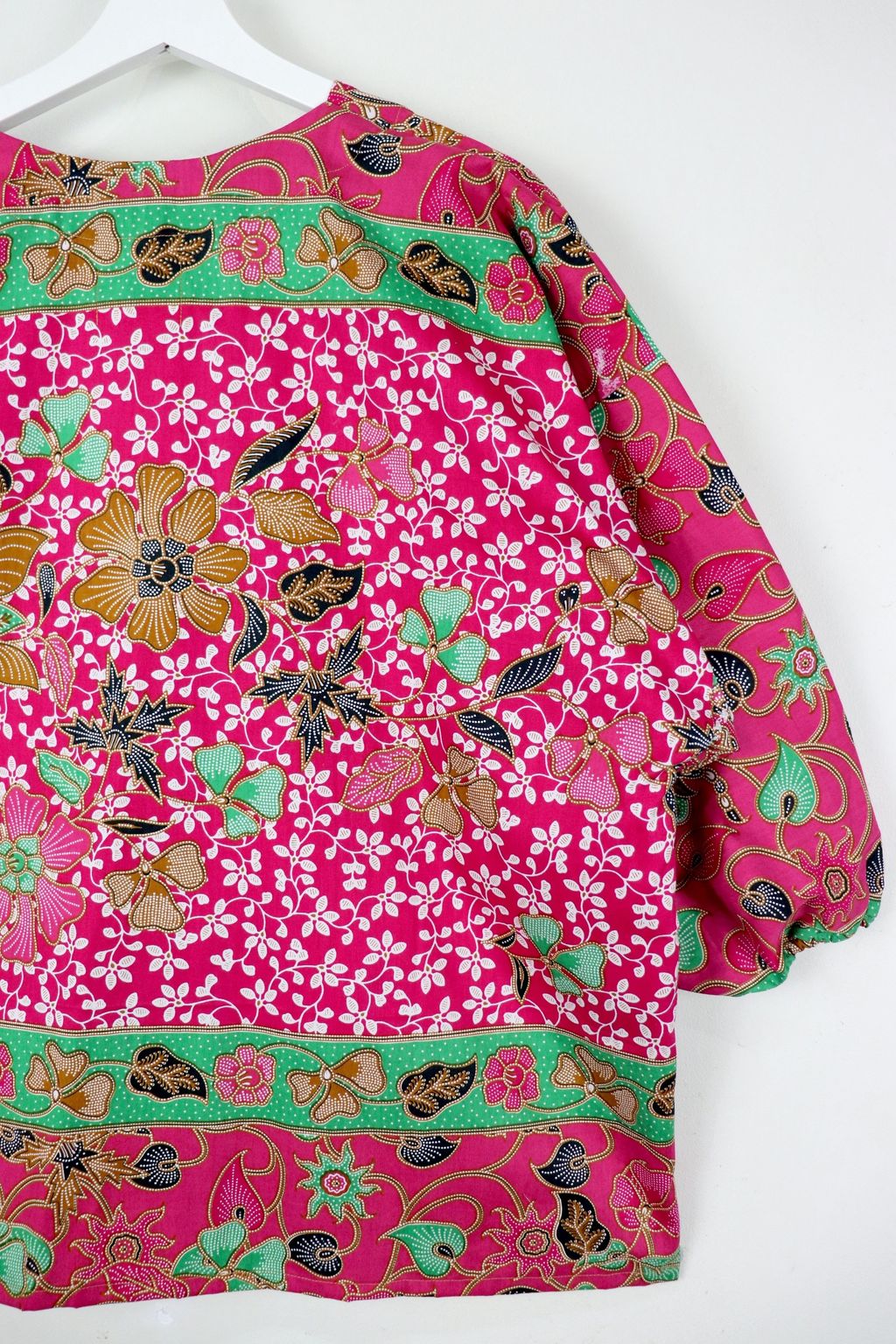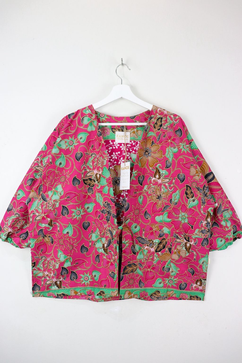 When we are stuck at home wearing a basic spaghetti strap top at home and the door bell rings, throw on this kimono before heading out to collect that parcel hehe. Or if your boss calls you last minute for a zoom call. Throw on this batik kimono :p