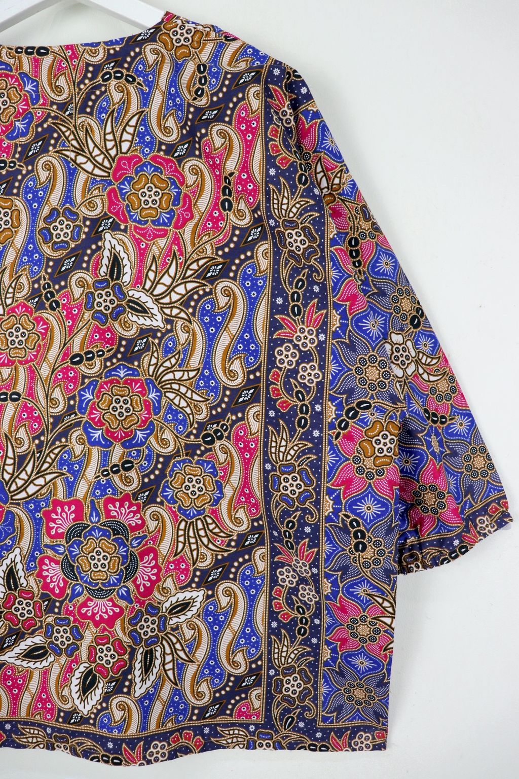 When we are stuck at home wearing a basic spaghetti strap top at home and the door bell rings, throw on this kimono before heading out to collect that parcel hehe. Or if your boss calls you last minute for a zoom call. Throw on this batik kimono :p