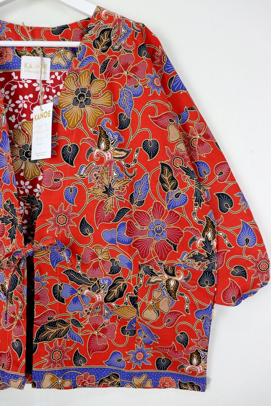 When we are stuck at home wearing a basic spaghetti strap top at home and the door bell rings, throw on this kimono before heading out to collect that parcel hehe. Or if your boss calls you last minute for a zoom call. Throw on this batik kimono :p