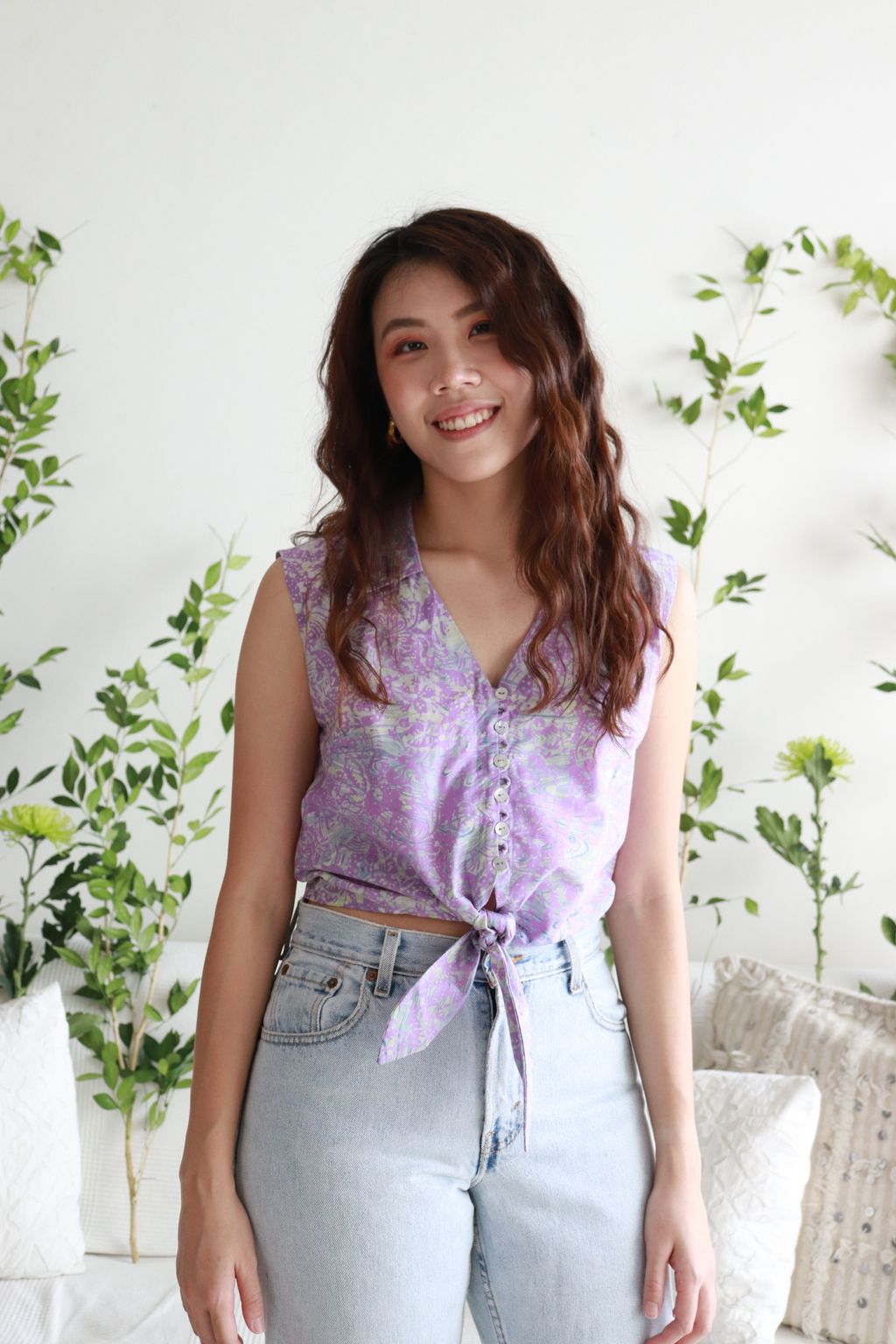 These pastel sleeveless front tie top are made from intricate hand stamped batik textile. Not one piece alike, you will love these beautiful pastel batiks made by skilled local artisans of talent. These batik textiles are made in Malaysia by artisans who push their creative boundaries to create timeless textiles in this modern age with traditional wisdom of age past.