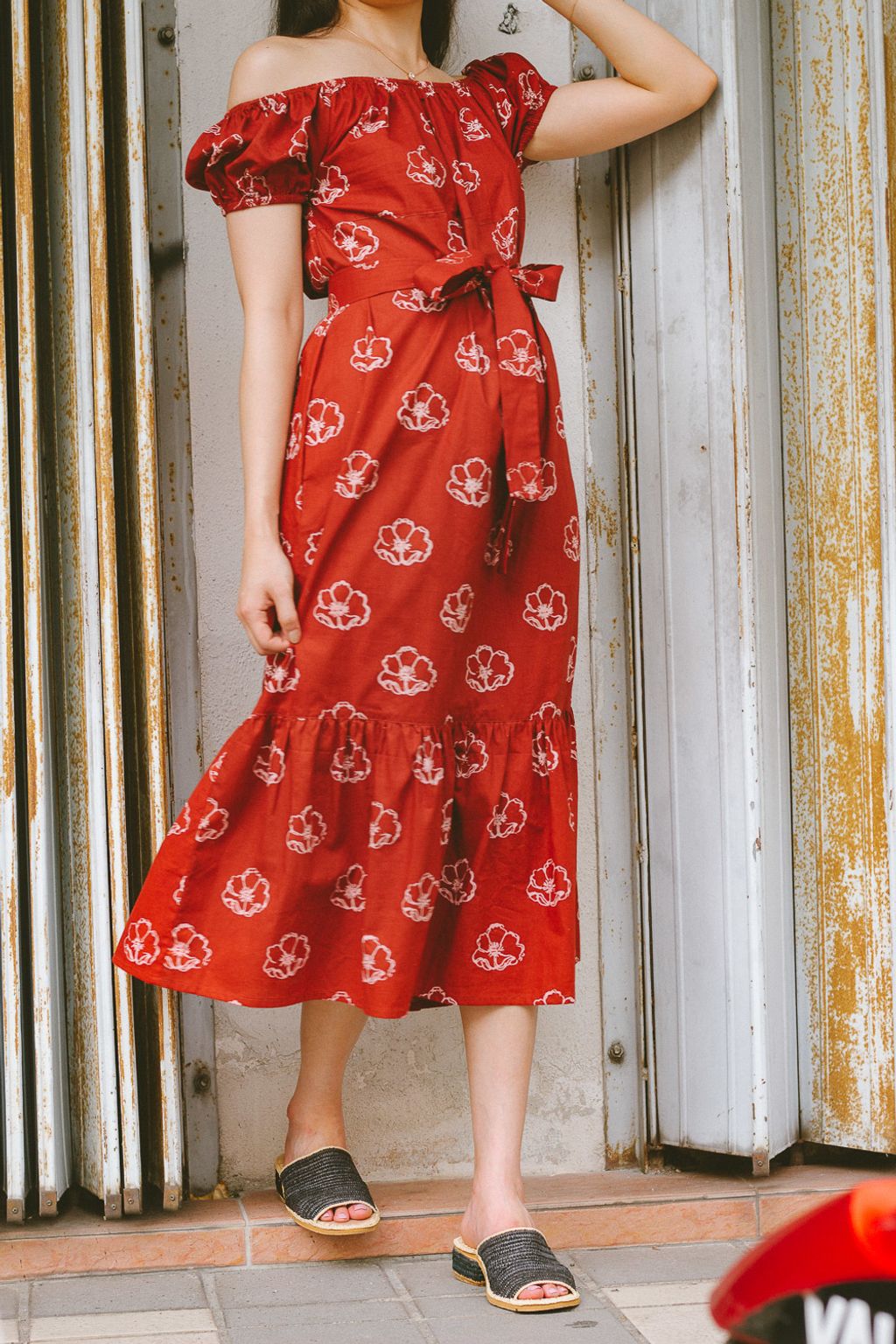 This beautiful Batik Terap dress is hand copper block printed by Artisans in the east coast of Malaysia. With the process of dipping the copper block into hot wax and stamping it onto this cotton fabric, it is then dyed and boiled to remove the wax residue leaving us with this beautiful floral motif that pop's out. Sewn together by Afghan refugees currently residing in Malaysia. This dress is proudly 100% made in Malaysia.