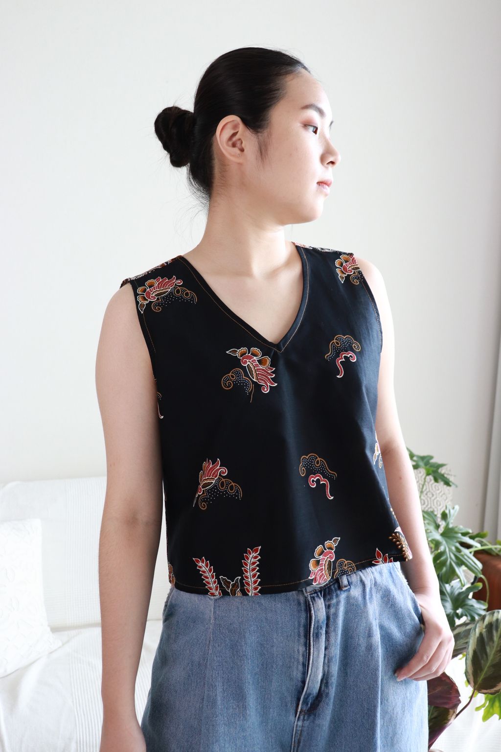 A limited range of Napkin Tops made of 2 different batik textile front and back. Combination of 2 complementary batik prints coming together creating a party!