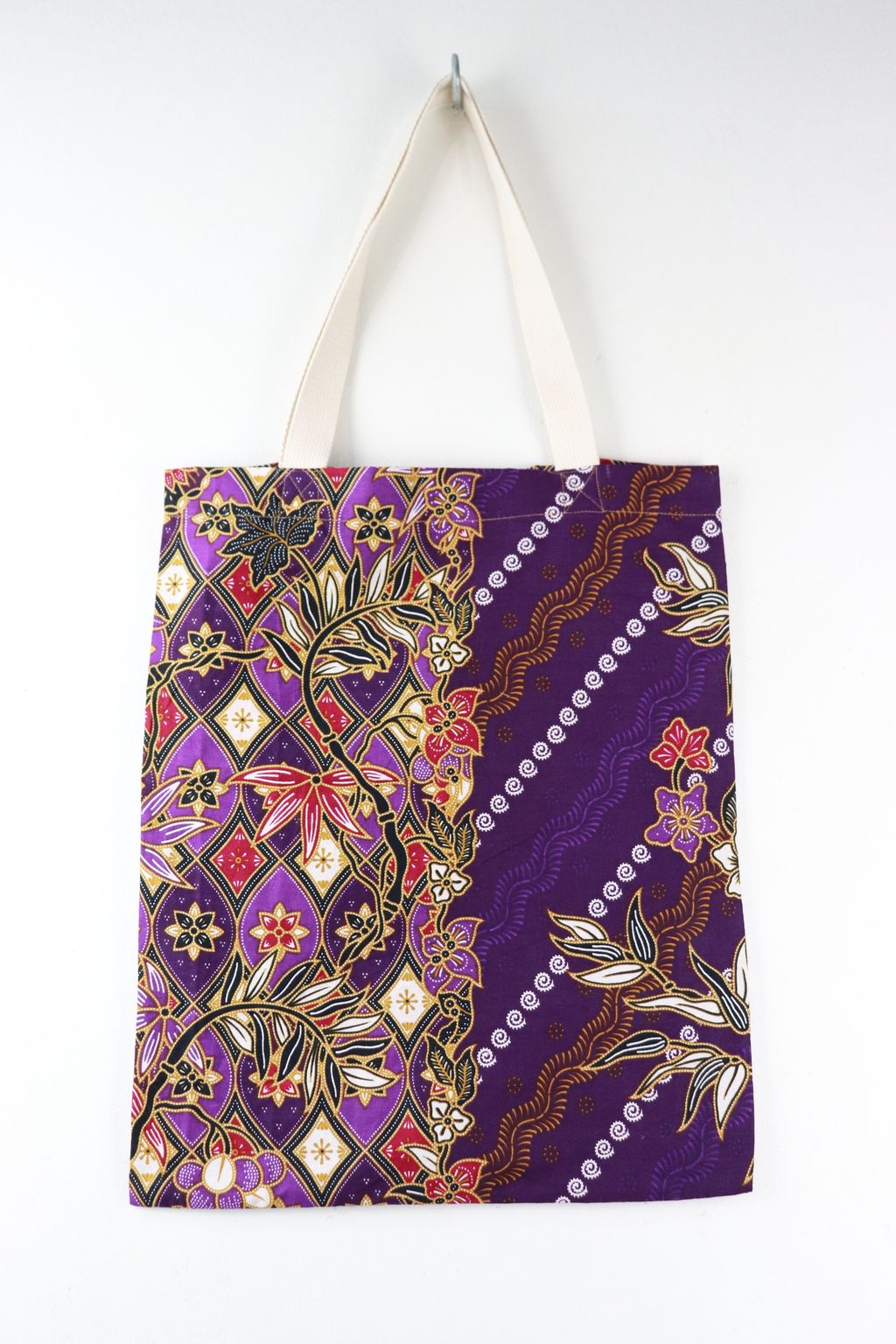These Batik Tote Bags come in a variety of one-off batik print combos.