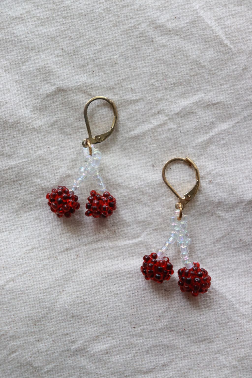 These beaded fruits earrings are handcrafted by the women in the Afghan refugee community.