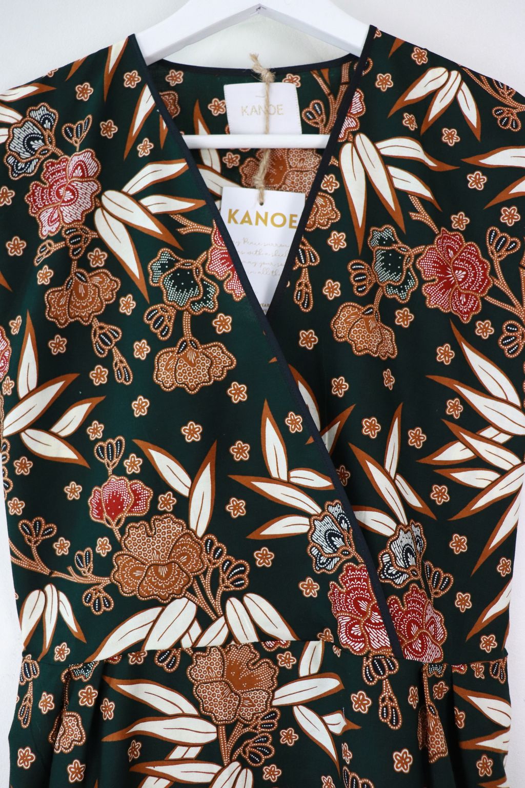 A classic KANOE fave - the Kimono Wrap Dress, now with an elegant touch of a thin black border around the neckline!