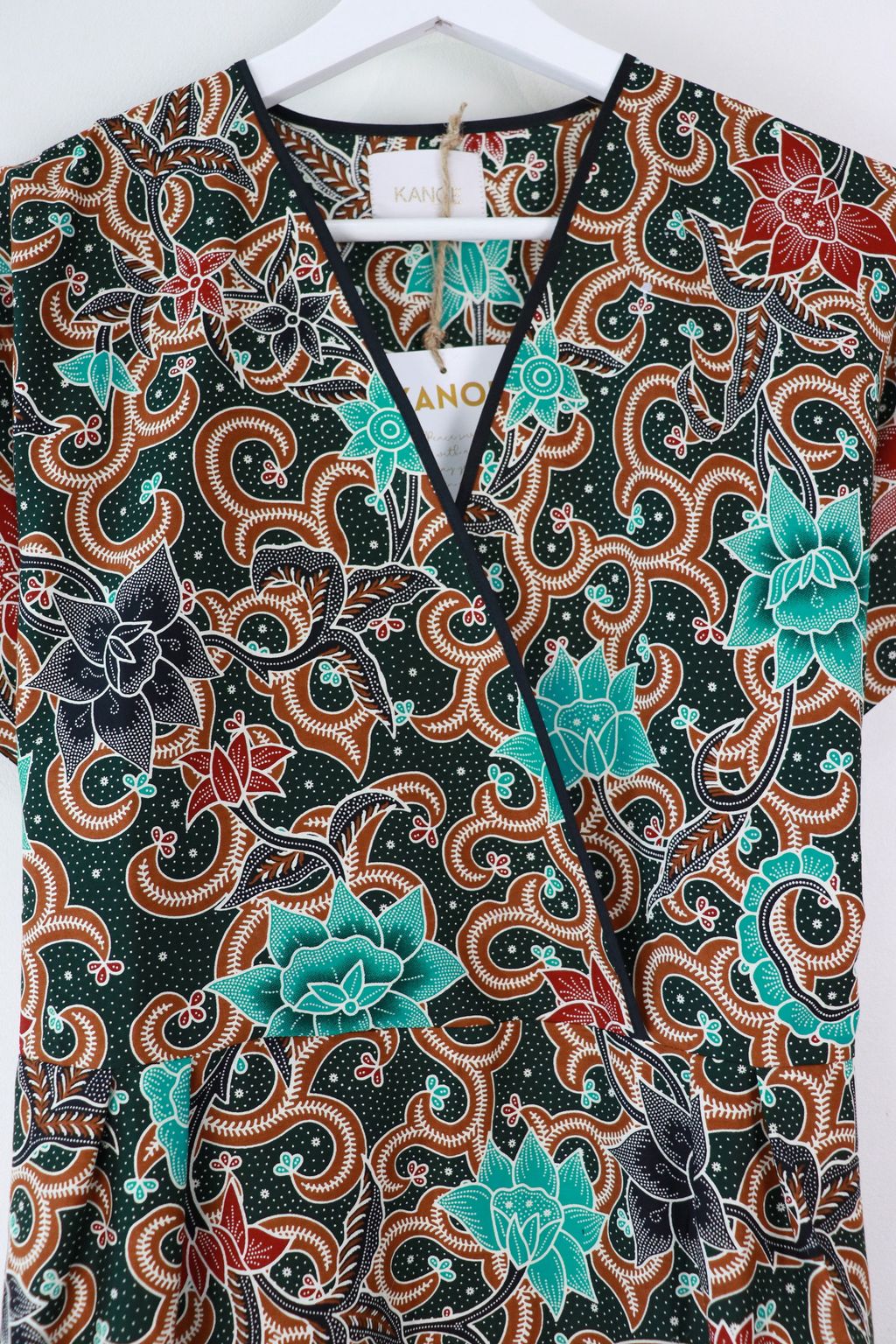 A classic KANOE fave - the Kimono Wrap Dress, now with an elegant touch of a thin black border around the neckline!