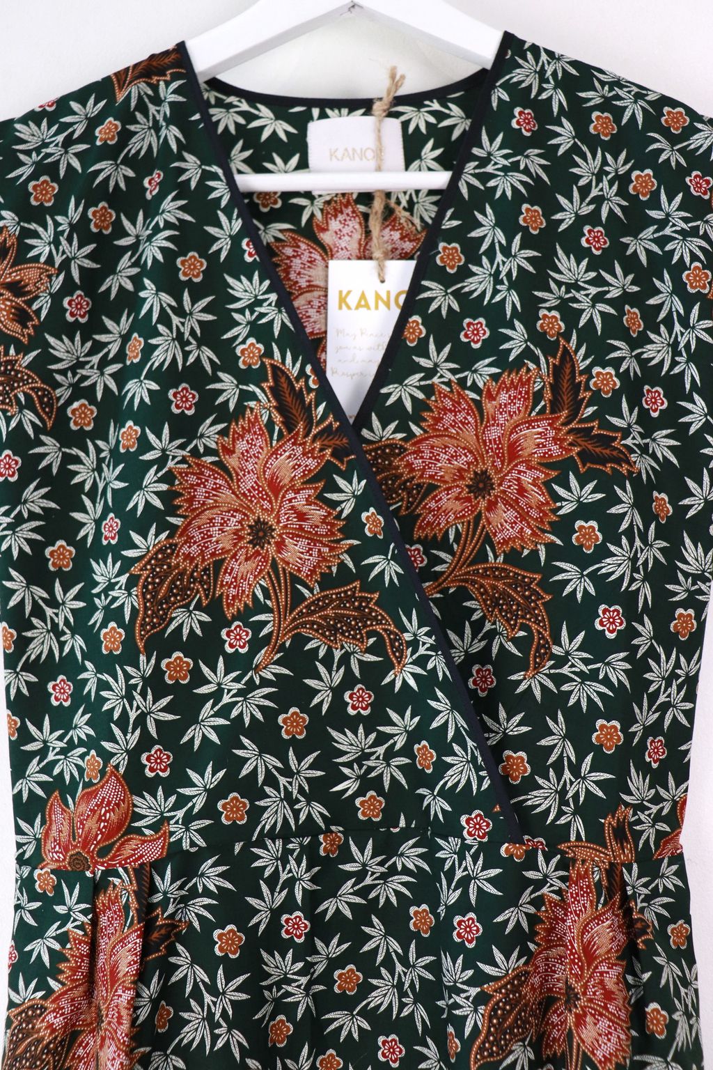 A classic KANOE fave - the Kimono Wrap Dress, now with an elegant touch of a thin black border around the neckline!