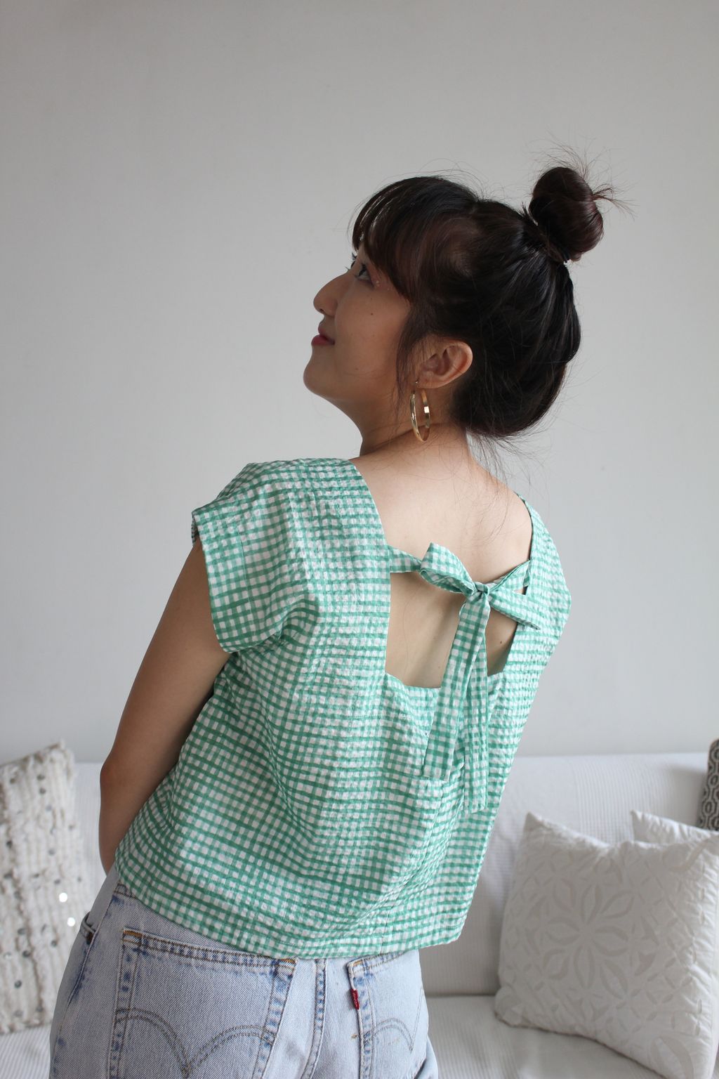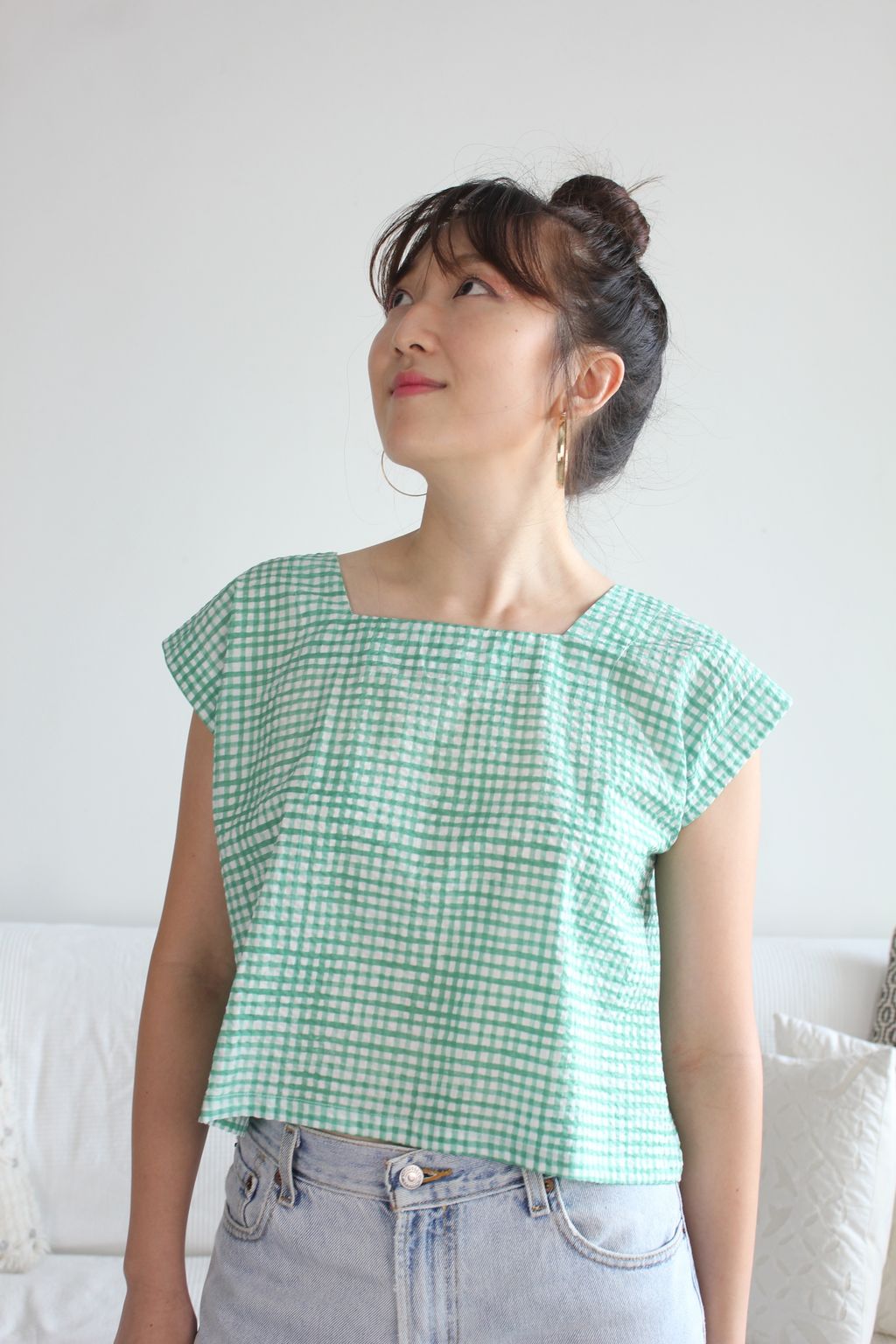 These delightful box tops are made of textured Japanese cotton. Textile 100% cotton made in Japan. Made only a few pieces. These tops are simple and beautiful. Lower box back with a ribbon tie, seam is above bra strap so don't worry, it won't show ;)