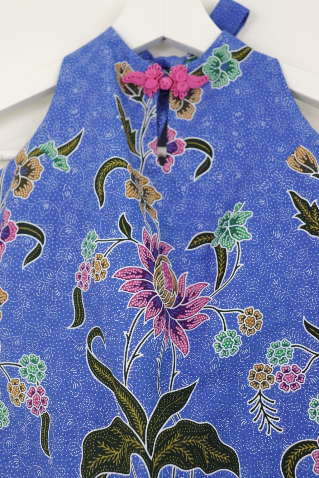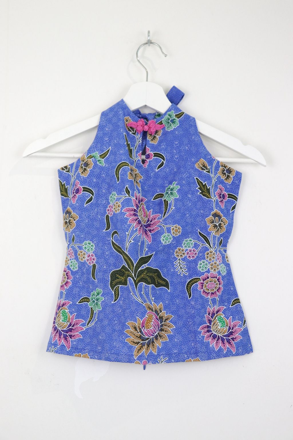 These super cute halter batik tops feature a chinese clasp button above the keyhole cutout!