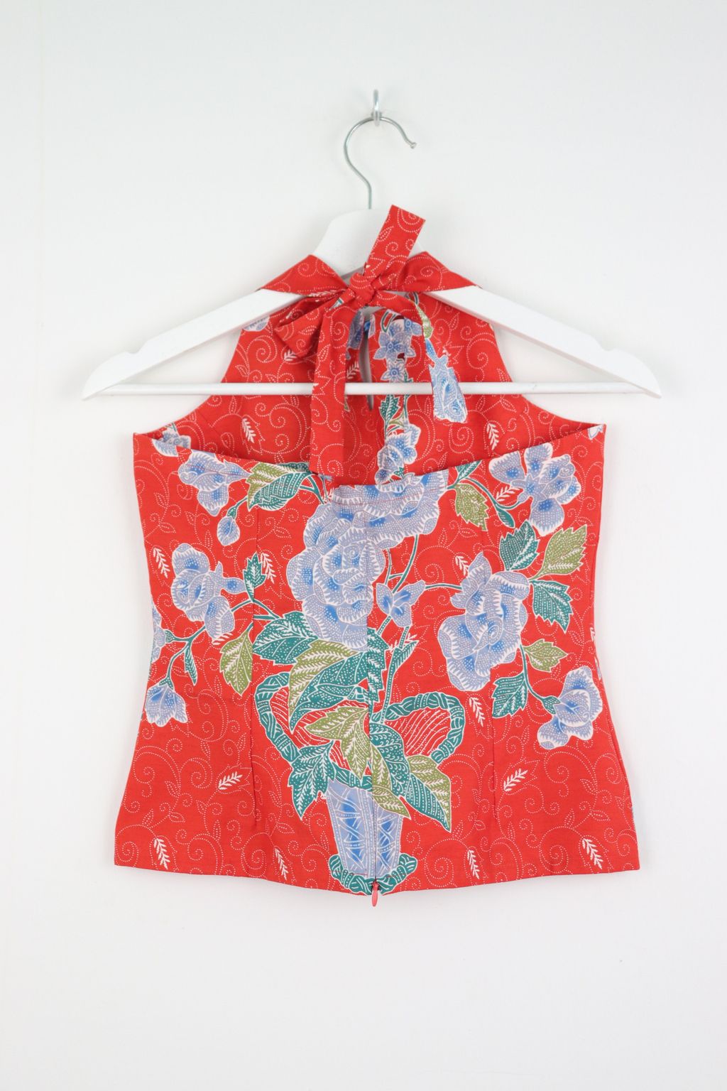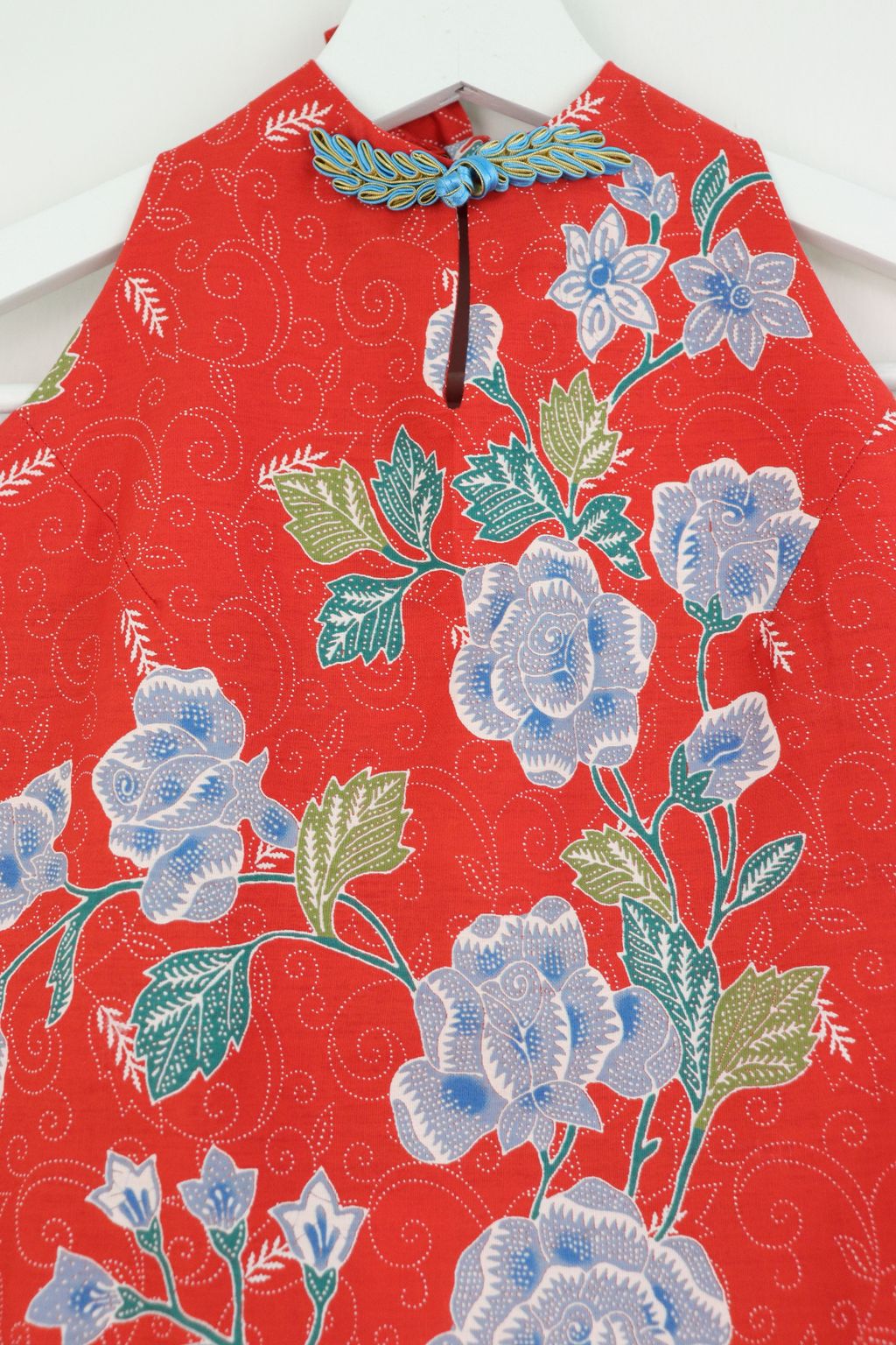 These super cute halter batik tops feature a chinese clasp button above the keyhole cutout!