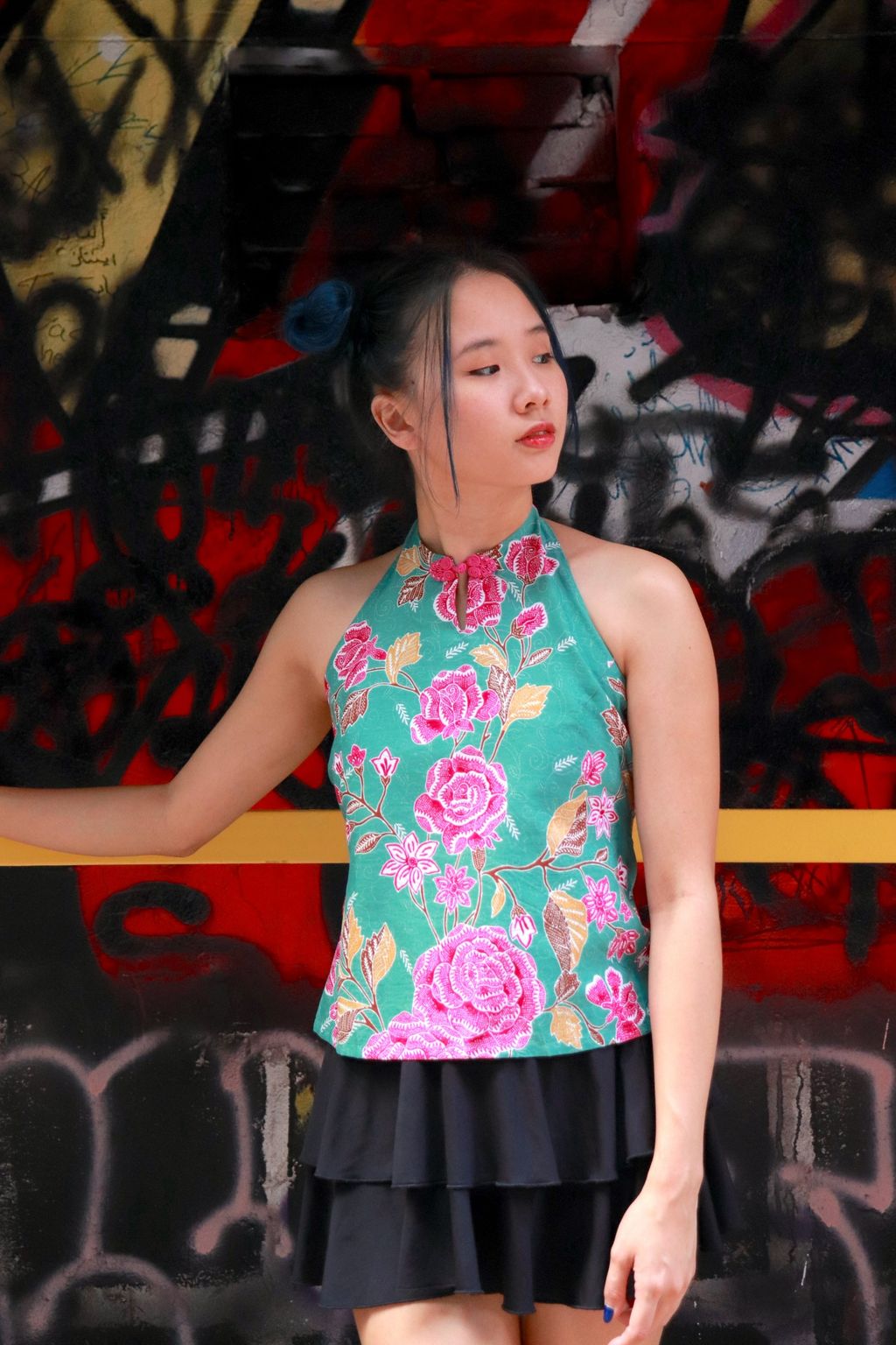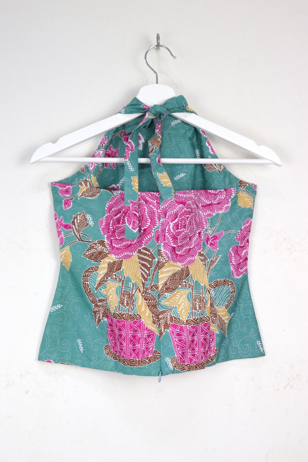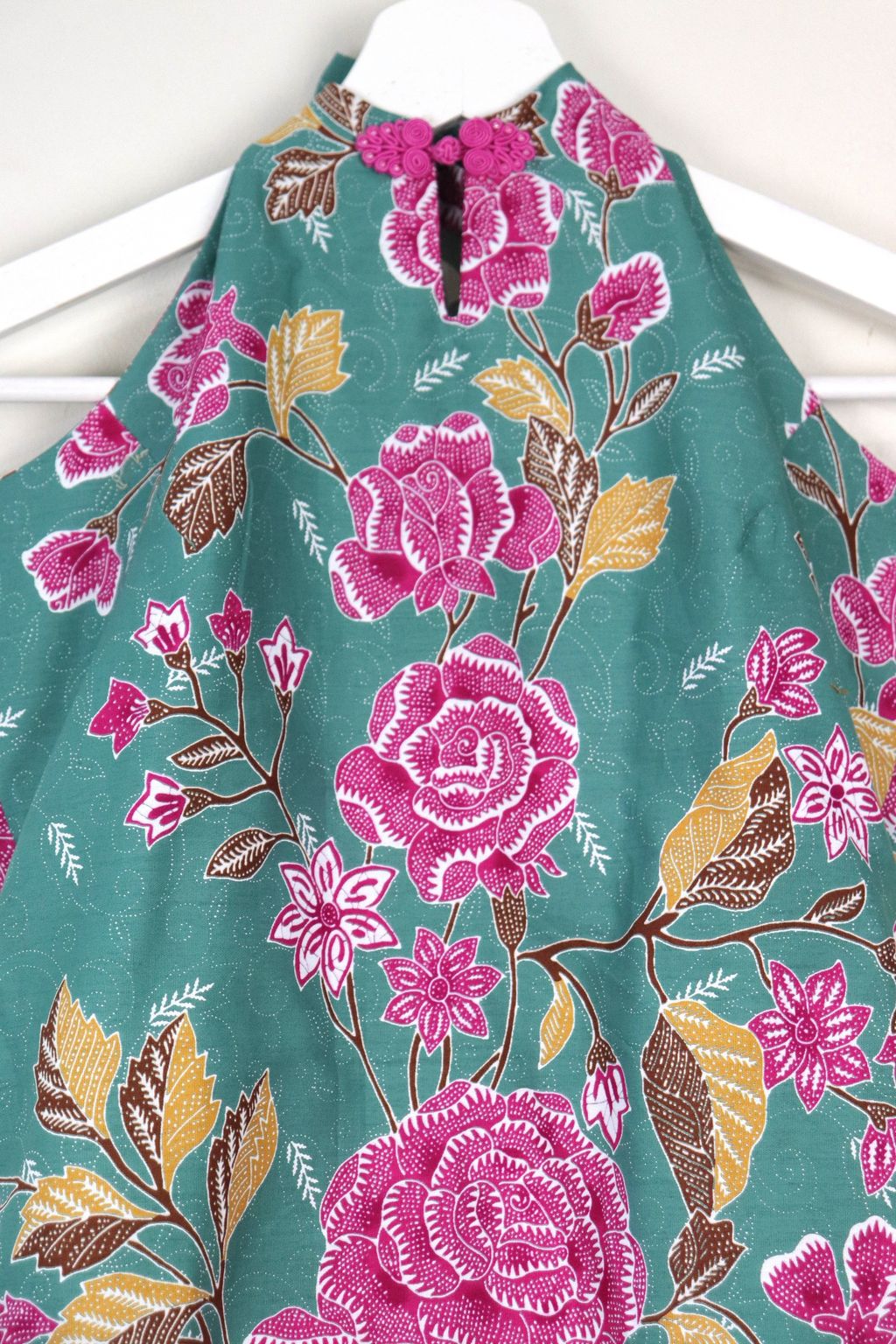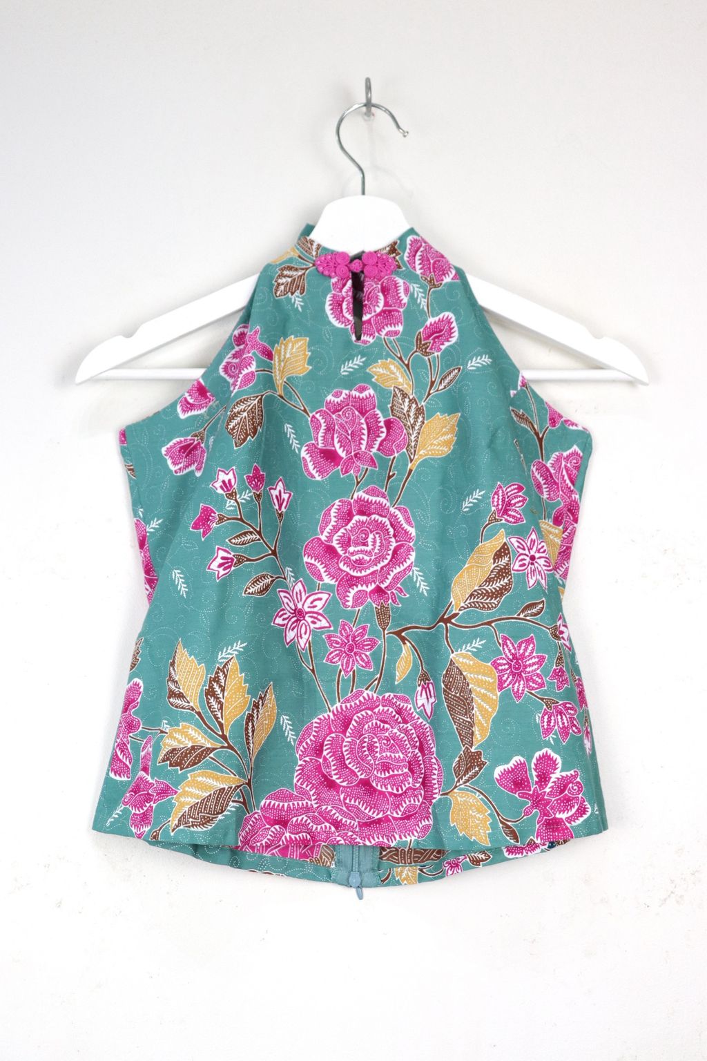 These super cute halter batik tops feature a chinese clasp button above the keyhole cutout!