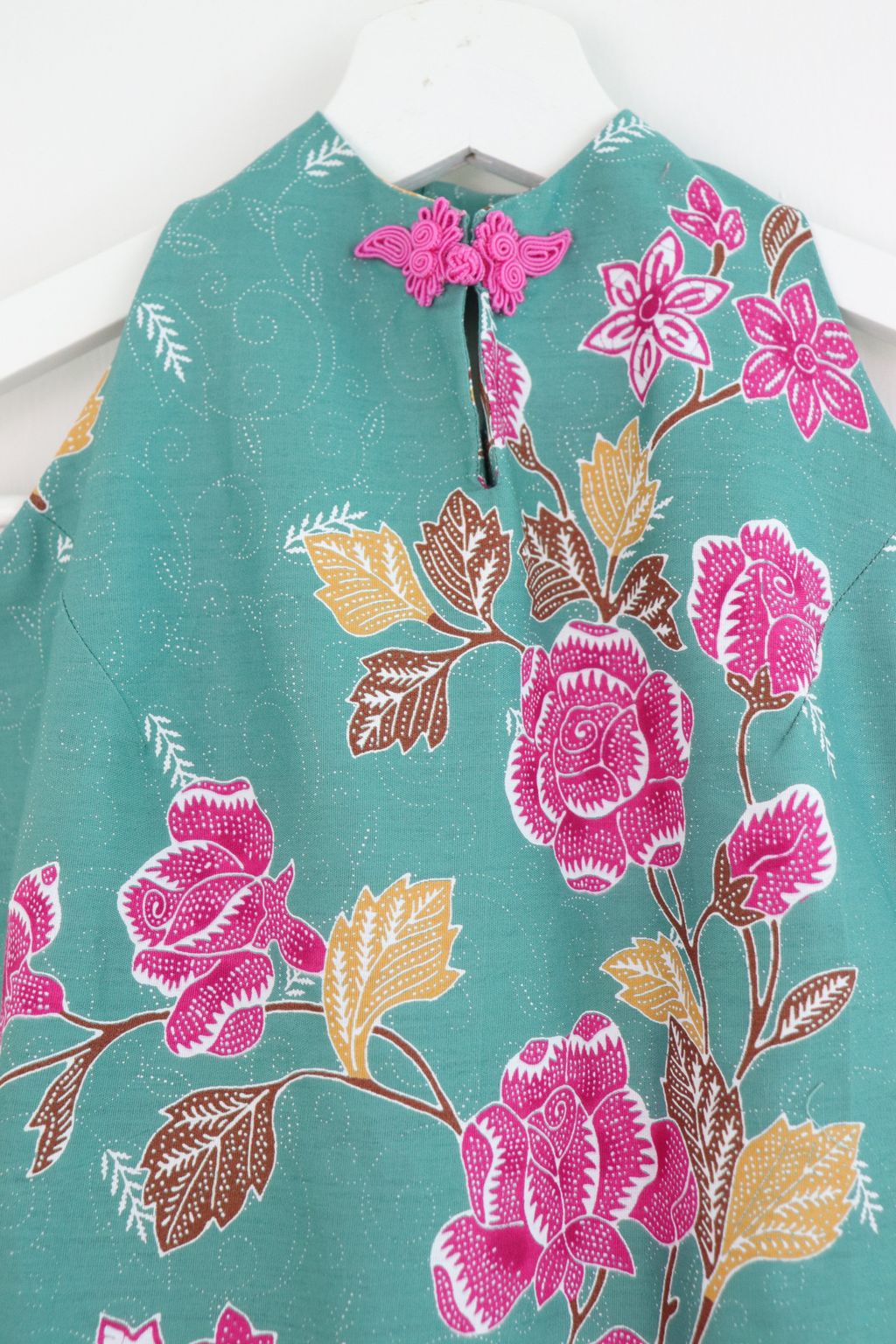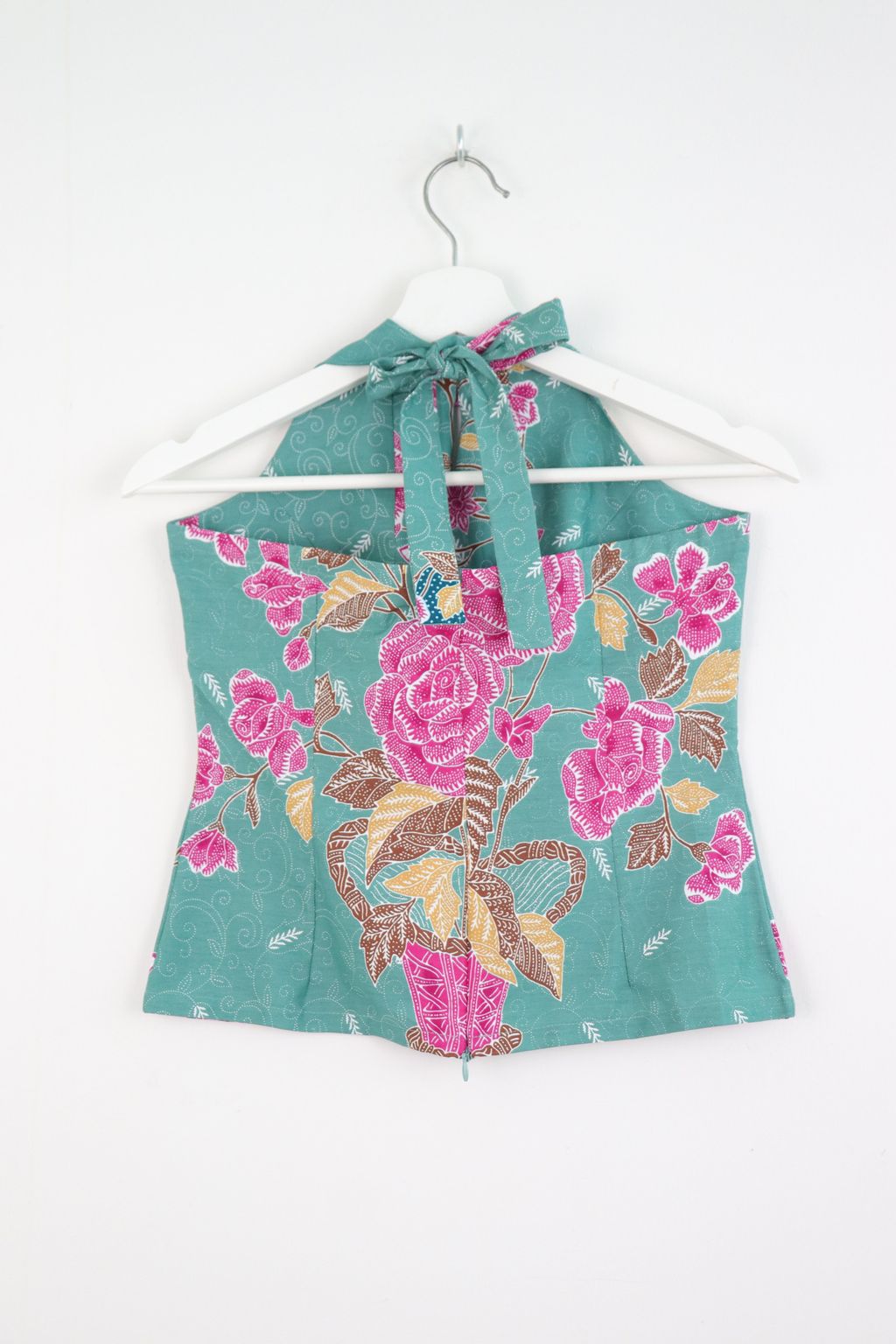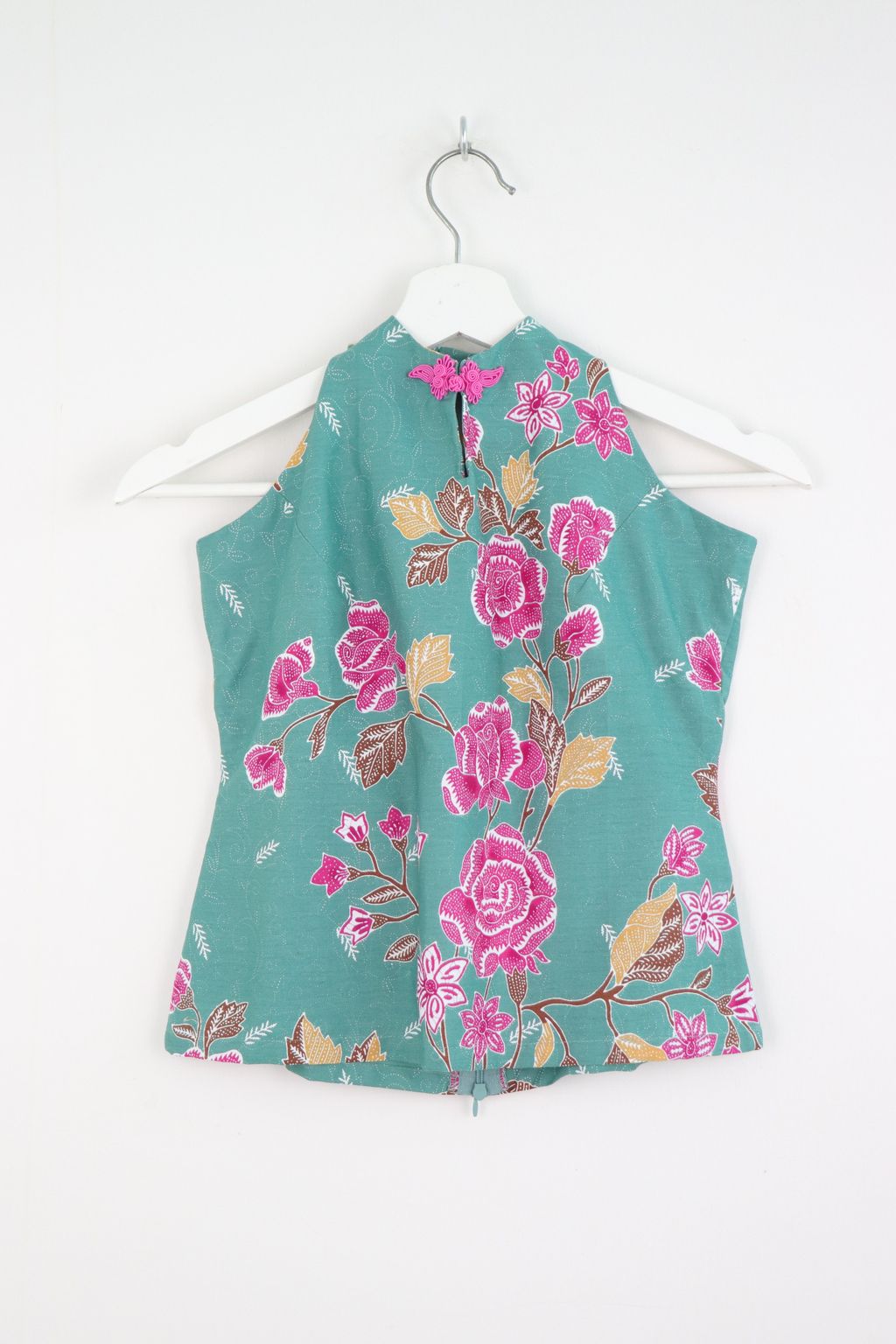 These super cute halter batik tops feature a chinese clasp button above the keyhole cutout!