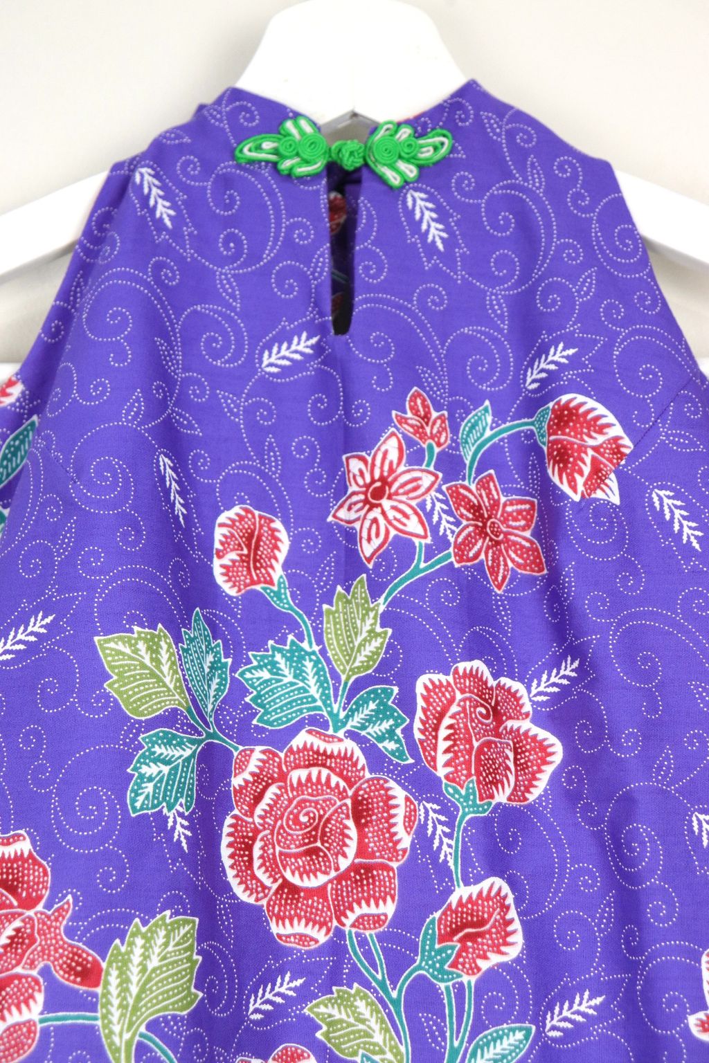 These super cute halter batik tops feature a chinese clasp button above the keyhole cutout!