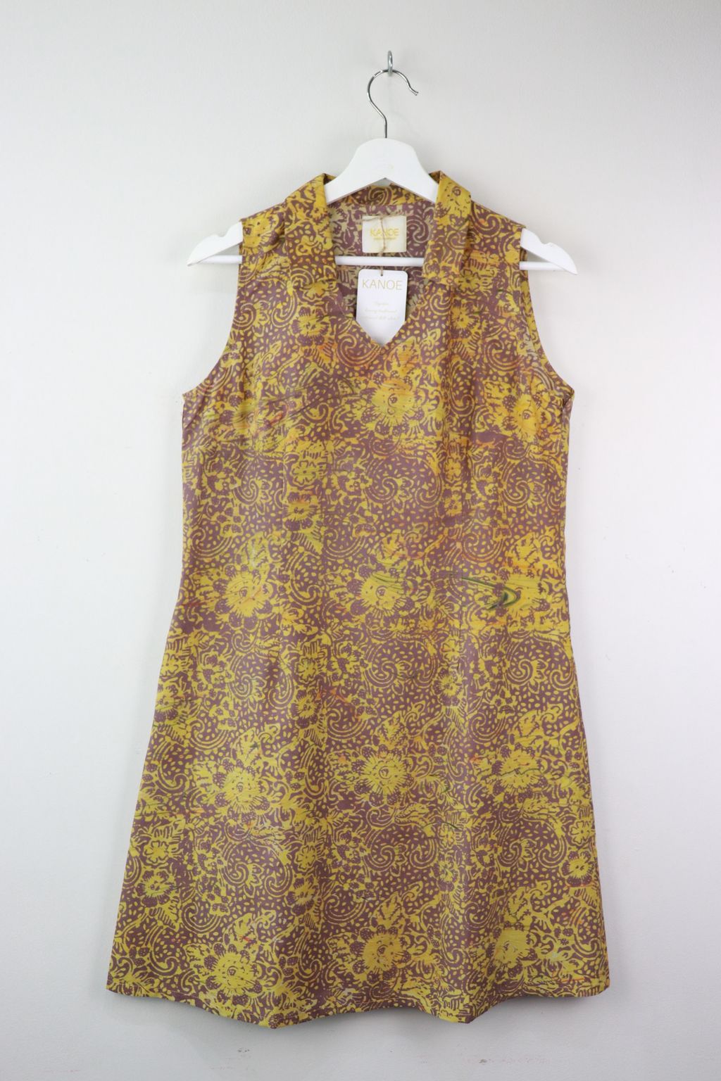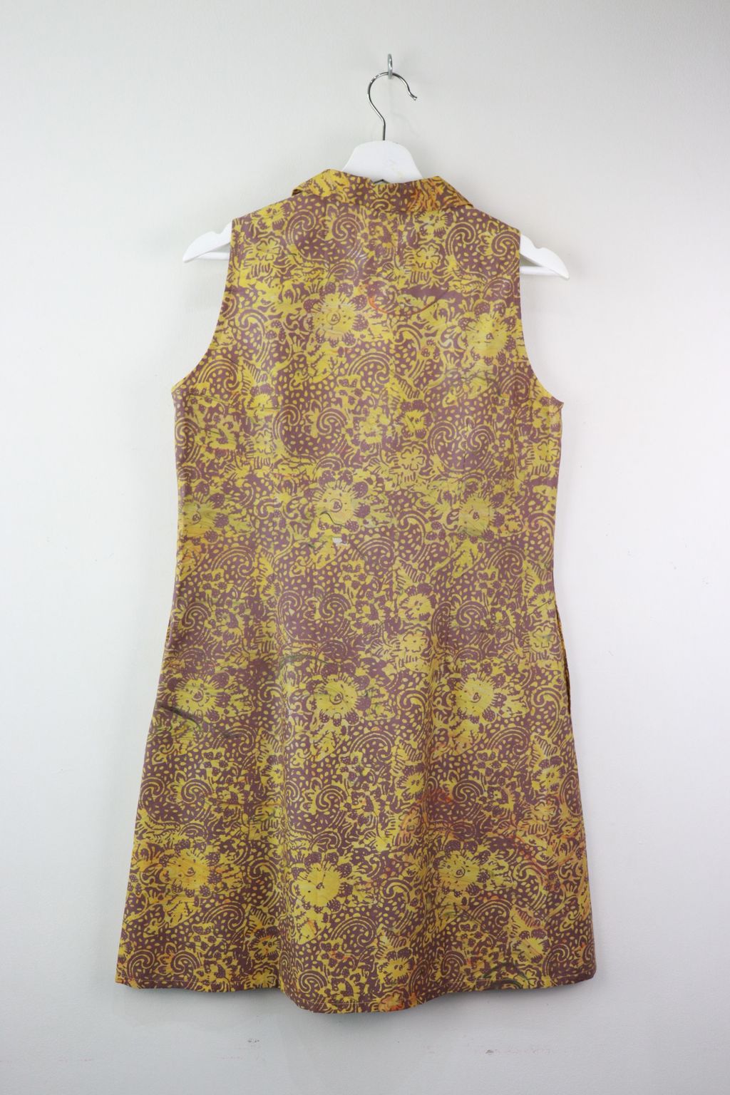 Collar V-neck Batik Dress - Sunflower Shine (M) [Handmade]
