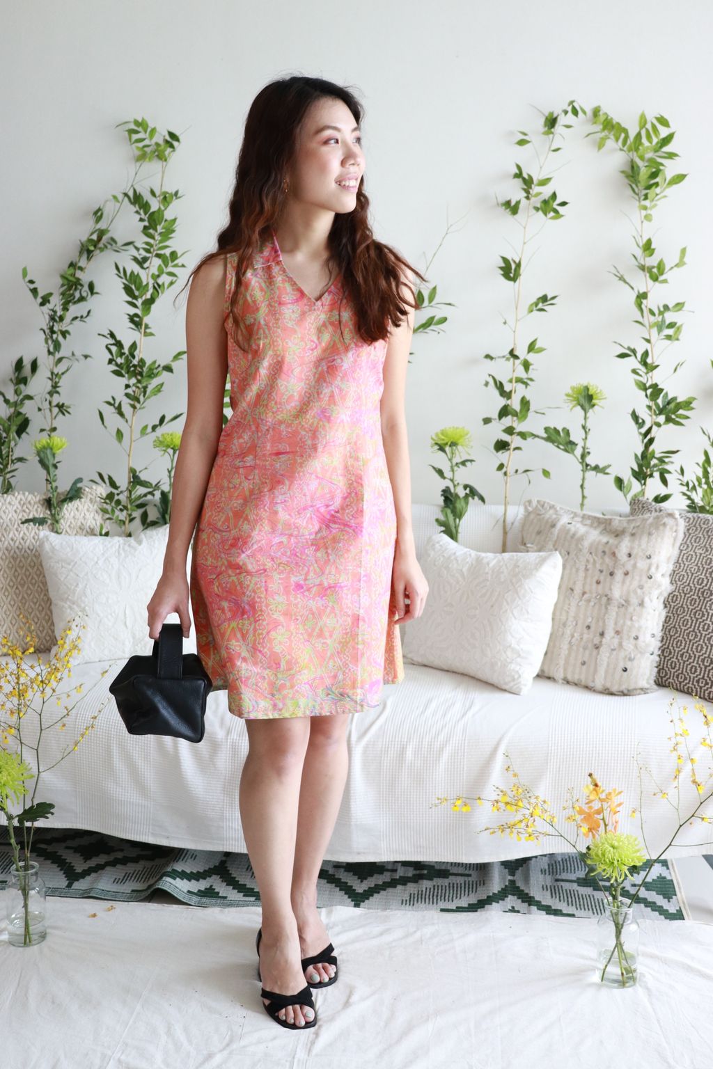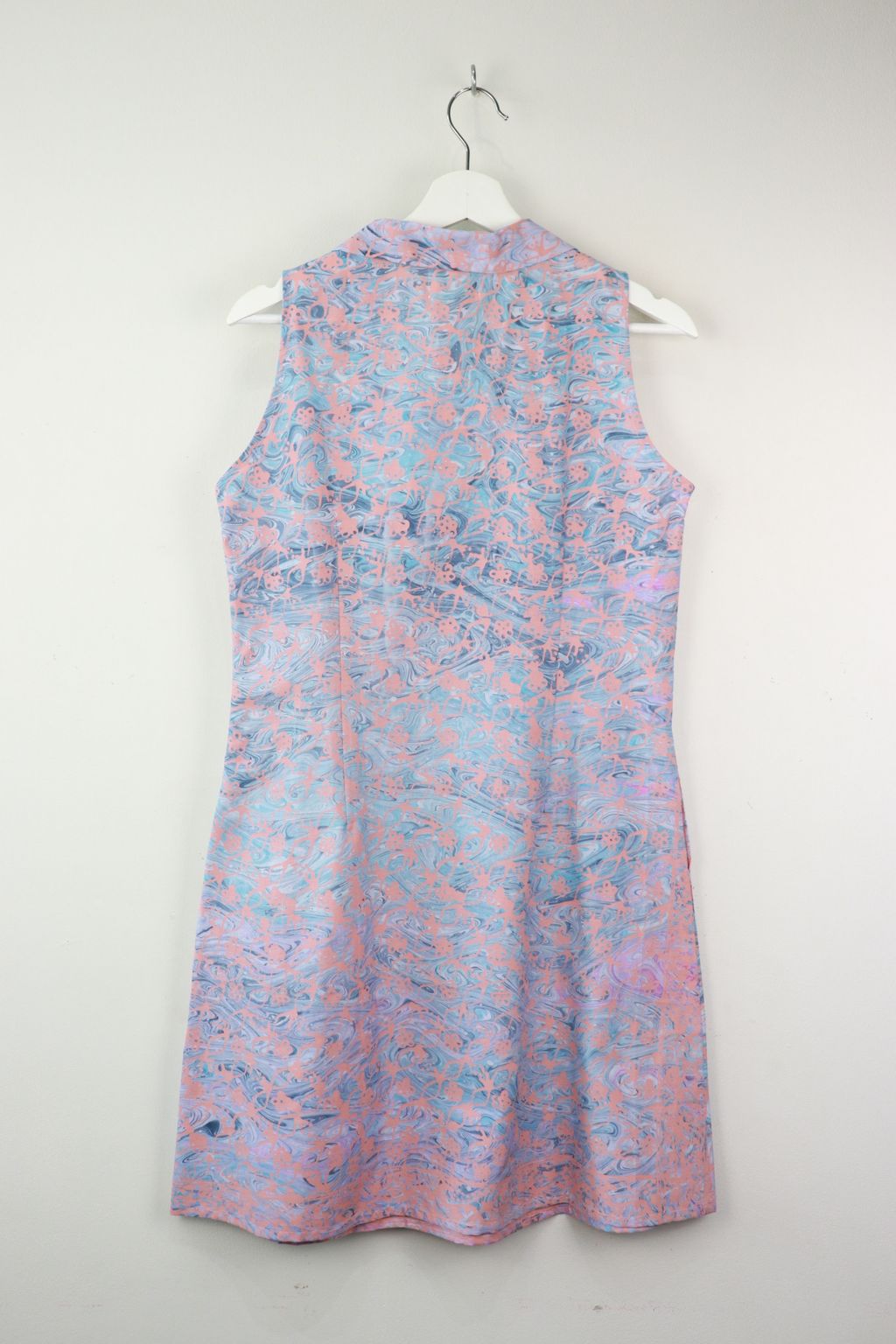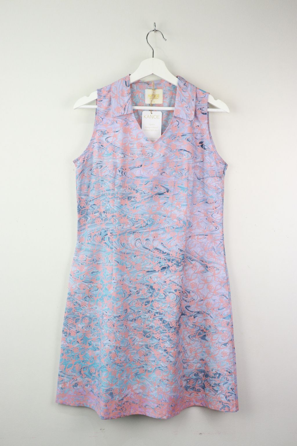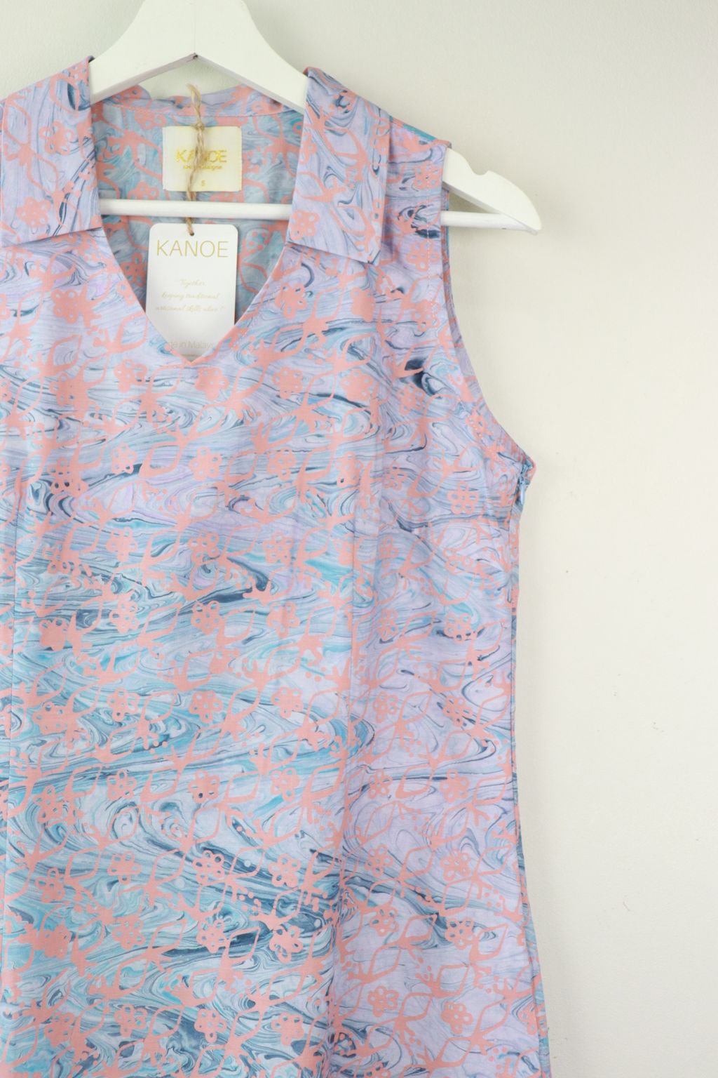 These classic collared v-neck sleeveless tops made in gorgeous local handmade batik. Created by our own artisans here in the tropics of Malaysia. 100% Cotton, unique one of a kind batik hand printed in swirls of pastel shades.